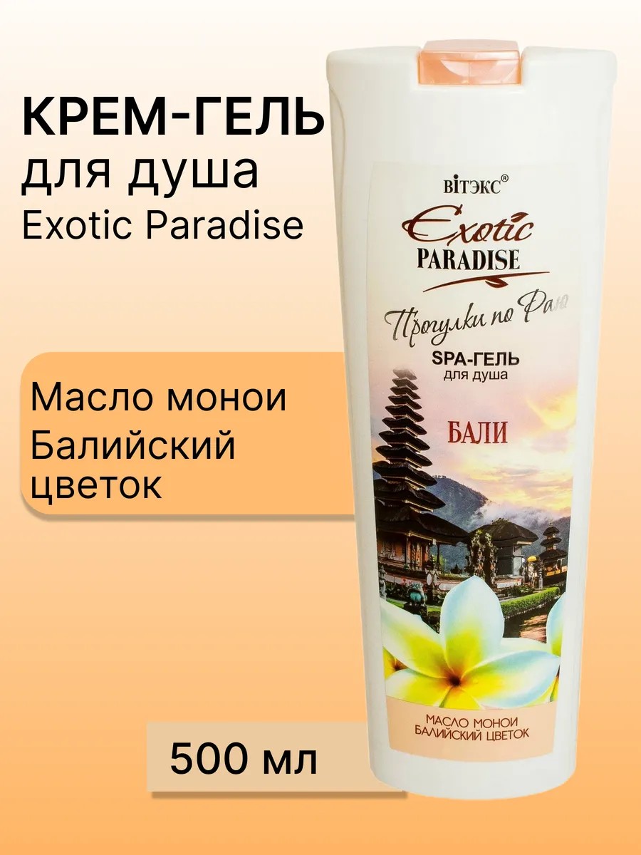 SPA-гель для душа Бали «Exotic Paradise. Прогулки по раю» от белорусского бренда Витекс — это увлажняющий гель для душа, который подарит вам незабываемые моменты ухода за телом. Уходовая косметика для тела идеально подходит как для женщин, так и для мужчин, обеспечивая бережное очищение и интенсивное увлажнение кожи. Парфюмированный гель для душа женский обладает уникальной формулой, которая обеспечивает глубокое очищение, не вызывая раздражений и пересушивания кожи. Гель для тела увлажняющий прекрасно пенится и легко смывается, оставляя после себя ощущение свежести и комфорта. Уход за телом подходит для всех типов кожи, включая чувствительную. Гель для душа парфюмированный включает в себя натуральные экстракты цветков франжипани и монои, а также масло кокоса, которые обеспечивают тонизирующий и увлажняющий эффект. Эти компоненты помогают снять усталость и дарят ощущение расслабления после долгого дня. Белорусская косметика линии «Exotic Paradise» прекрасно питает, смягчает и увлажняет кожу, обладает выраженным успокаивающим действием и легким ароматом. Гель для душа парфюмированный женский идеально подходит для самой нежной чувствительной кожи. SPA-гель для душа от Vitex — это не просто средство для очищения, а настоящая уходовая косметика, которая заботится о вашей коже, придавая ей мягкость и бархатистость. Погрузитесь в атмосферу тропического рая с каждым использованием SPA-геля и наслаждайтесь роскошным уходом за телом!