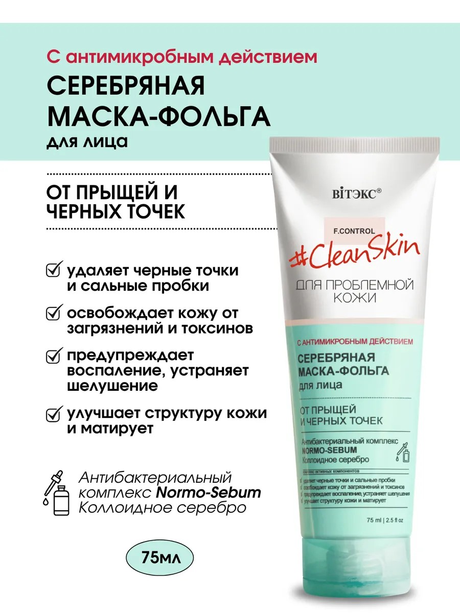 Серебряная маска для лица от Витэкс – это эффективное решение для проблемной кожи, склонной к жирности, расширенным порам и появлению акне. Маска обладает антибактериальным действием, помогая бороться с воспалениями и предотвращать появление новых высыпаний. Формула маски, обогащенная косметической основой, мягко очищает кожу, удаляя излишки себума и загрязнения, которые часто провоцируют появление черных точек. Регулярное использование маски способствует сужению пор, выравниванию текстуры кожи и придает ей матовость. Серебряная маска Витэкс – это ваш помощник в борьбе за чистую, здоровую и сияющую кожу.