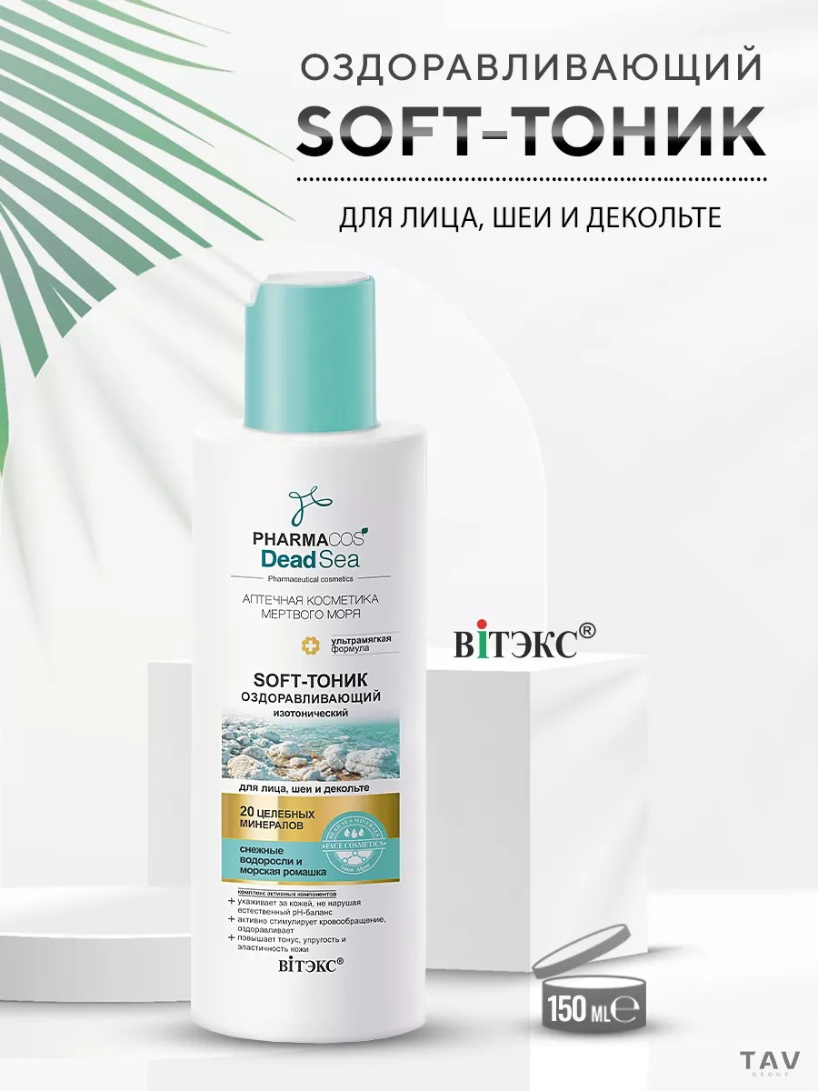Healthy SOFT-tonic with an isotonic (containing a physiological percentage of Dead Sea salt) formula helps restore the natural physiological properties of the skin, increases its protective properties, improves the skin's susceptibility to subsequent care products. Main active ingredients: