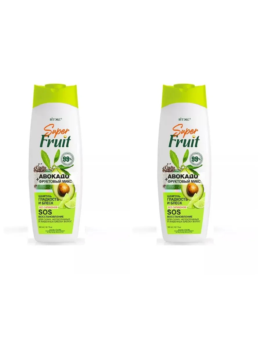 АВОКАДО + фруктовый микс Шампунь ГЛАДКОСТЬ и БЛЕСК SOS ВОССТАНОВЛЕНИЕ для сухих, непослушных и лишенных блеска волос БЕЗ СИЛИКОНОВ