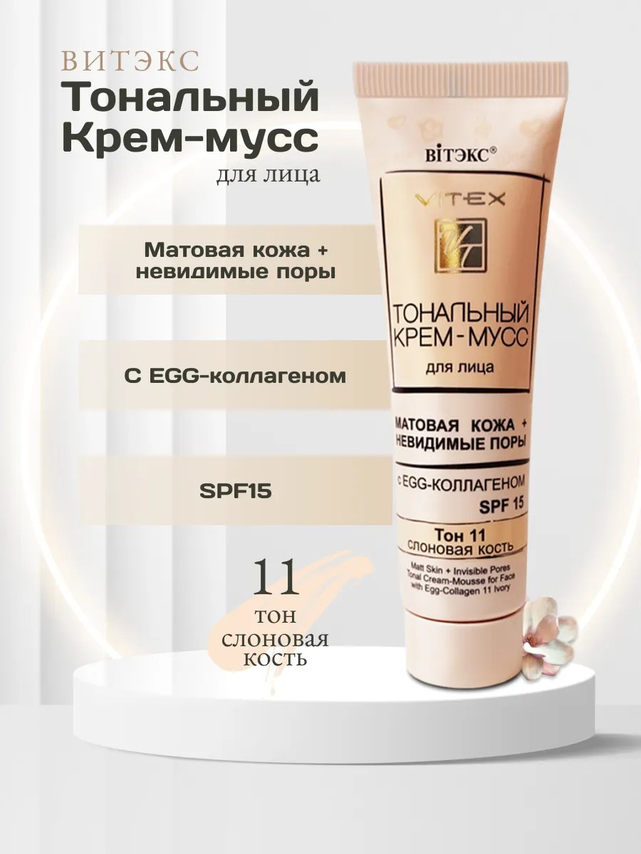 Тональный крем-мусс SPF15 с коллагеном тон 11 светло-бежевый