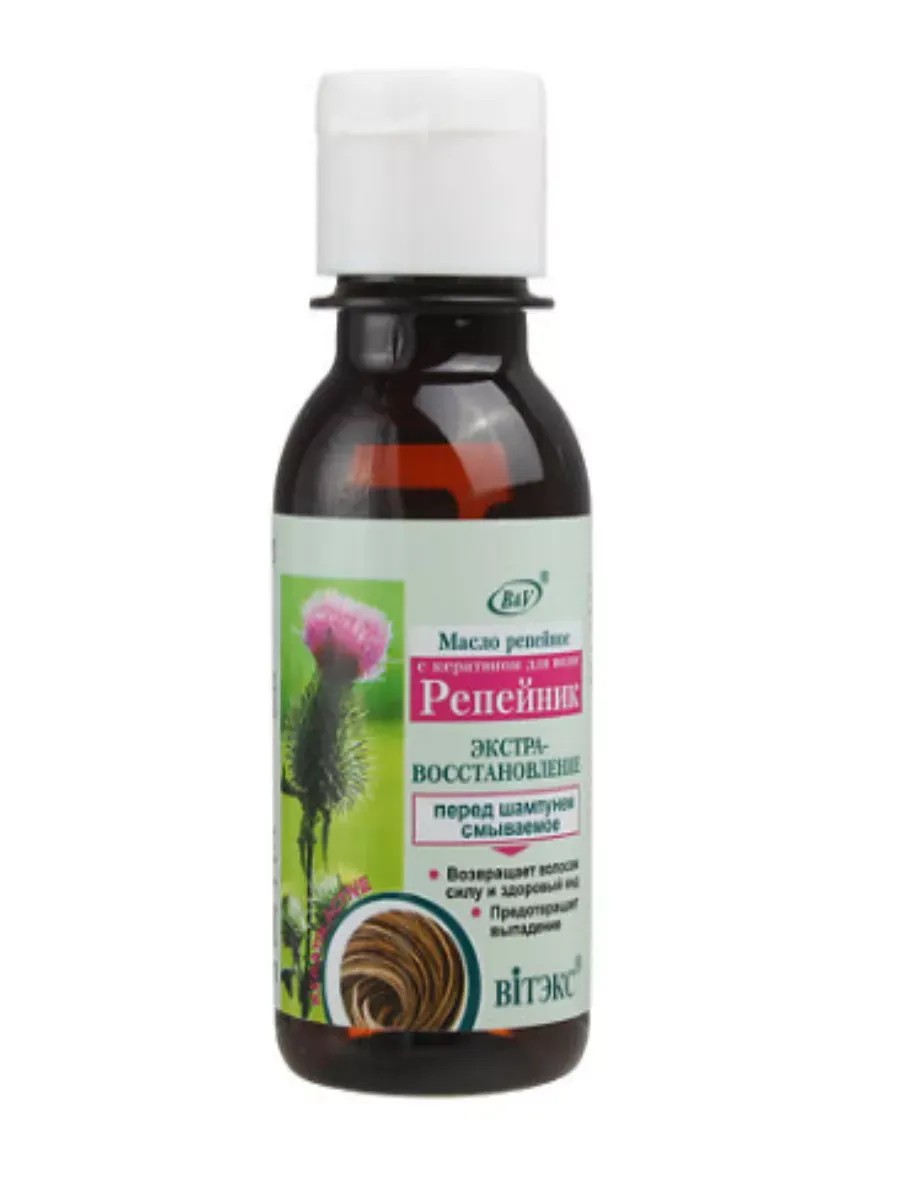 Масло супер активное с кератином для волос 100 мл. Репейное масло укрепляет корни волос, предотвращает их выпадение, устраняет сухость волос. Кератин восстанавливает кутикулу волос, запечатывает поврежденные участки, обеспечивает волосам дополнительную прочность.