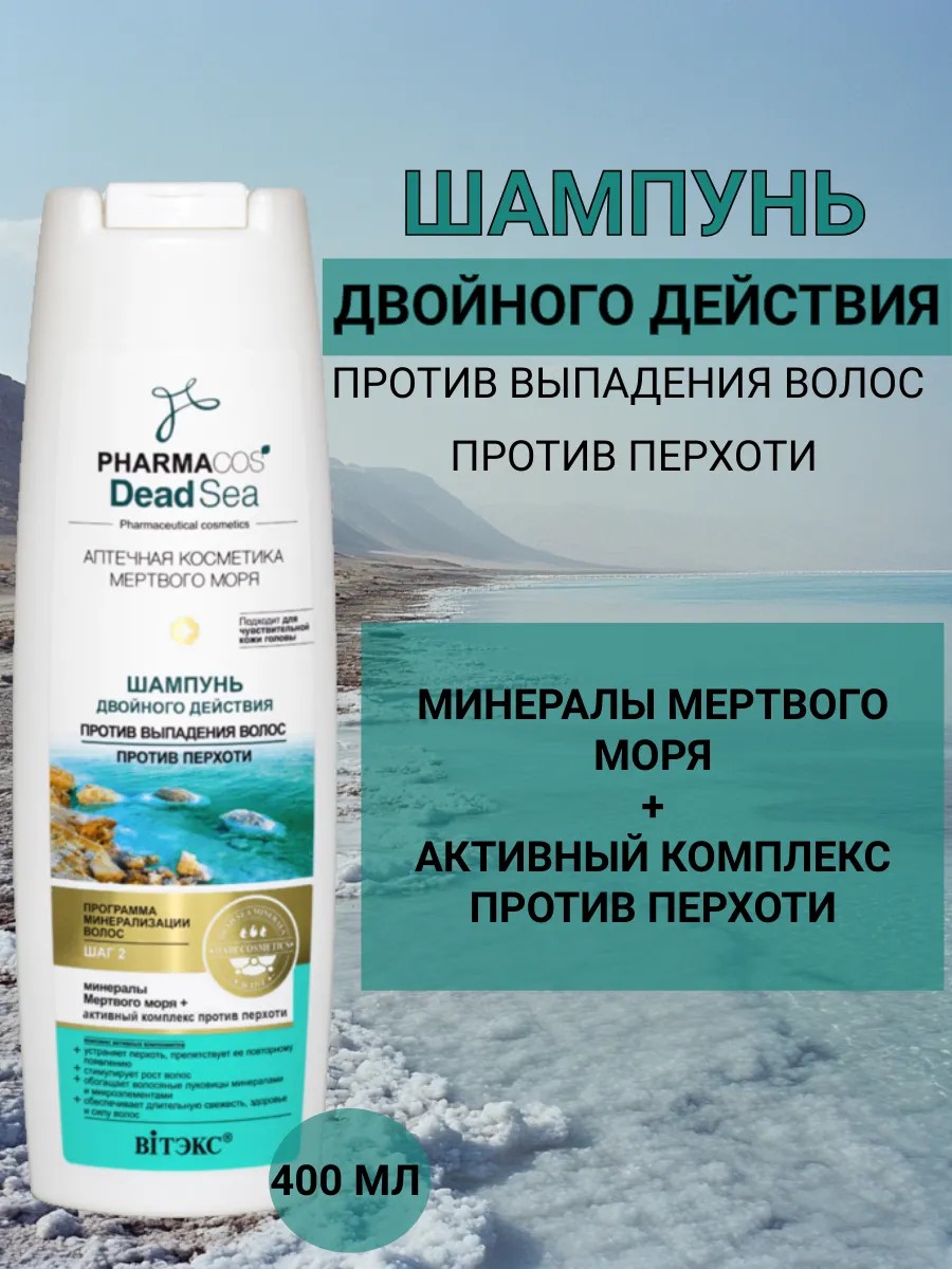 Шампунь двойного действия деликатно очищает волосы и, благодаря синергетическому действию целительной эссенции из 20 минералов Мертвого моря, запатентованного комплекса для роста волос и активного комплекса против перхоти, эффективно помогает направленному решению двух проблем: перхоть и выпадение волос. 20 целебных минералов Мертвого моря (включая магний, кальций, серу, бромид, йод, натрий, цинк и калий) активно оздоравливают волосы и кожу головы, позволяя надолго избавиться от перхоти. Улучшают микроциркуляцию у корней волос, обеспечивают усиленное питание фолликулов, препятствуют выпадению волос и стимулируют их рост.