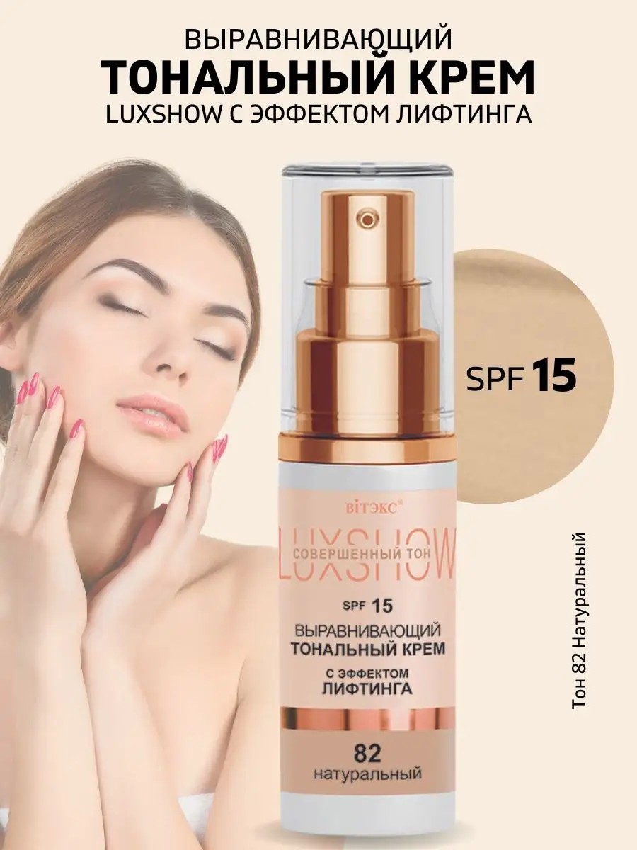 The foundation combines impeccable toning properties and excellent anti-aging, moisturizing, smoothing and lifting effects. Silky and sensual, the cream spreads easily and smoothly over the skin and covers it with a weightless camouflage veil that instantly makes wrinkles, redness, pigmentation and other imperfections virtually invisible, and the complexion is even and radiant all day long. Caring and rejuvenating ingredients (tetrapeptides, low molecular weight hyaluronic acid, centella, macadamia, butcher's broom, calendula, vitamin E, panthenol, betaine) intensively nourish and moisturize the skin, increase its density, firmness and elasticity, smooth out wrinkles, and provide a pronounced lifting effect. The rich formula skillfully combines five highly stable pigments that even out and illuminate the skin, visually making it perfect in any lighting. SPF 15 protects against UVA and UVB rays, preventing premature skin aging. Vitex, premium line, Belarusian cosmetics, bestseller, New product, makeup, foundation, peptides, peptide cream