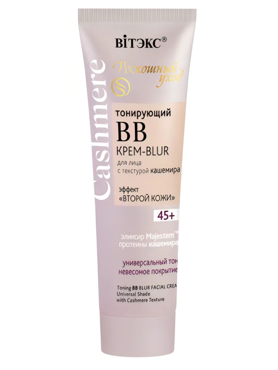 Тонкий и легкий Тонирующий ВВ Крем-BLUR с Текстурой Кашемира 45+. Антивозрастной крем обеспечивает невесомое покрытие, скрывая несовершенства и создавая эффект «второй кожи». Интеллектуальная формула разглаживает морщины и прыщики, освежает цвет лица и придает коже мягкость благодаря протеинам кашемира. Пигменты идеально адаптируются под ваш тон, оставляя ее сияющей и здоровой. Добейтесь безупречного результата и долгосрочного увлажнения с эффектом сатинового финиша!
