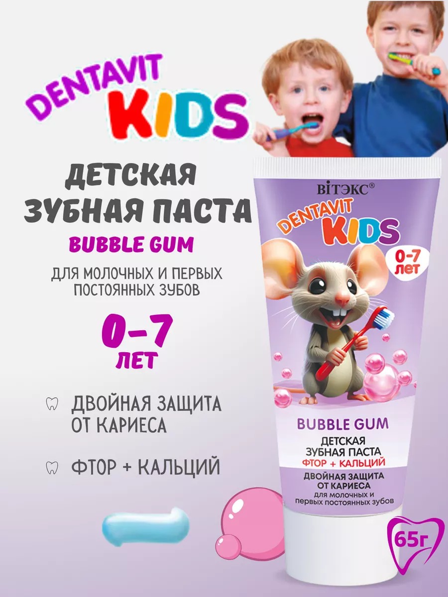 Витэкс Зубная паста Детская DENTAVIT KIDs вкус Бабл Гам