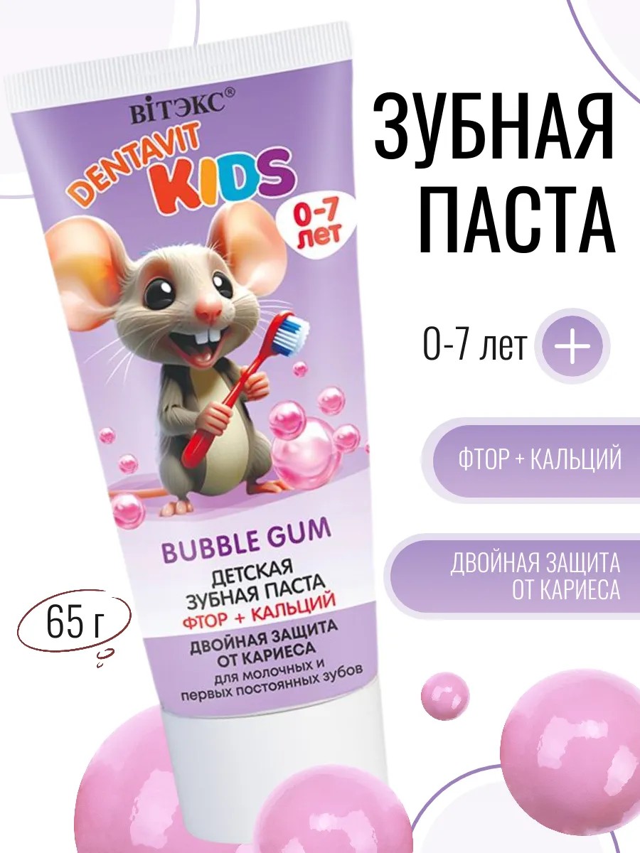 Детская зубная паста фтор + кальций двойная защита от кариеса, bubble gum. - высокая эффективность против кариеса