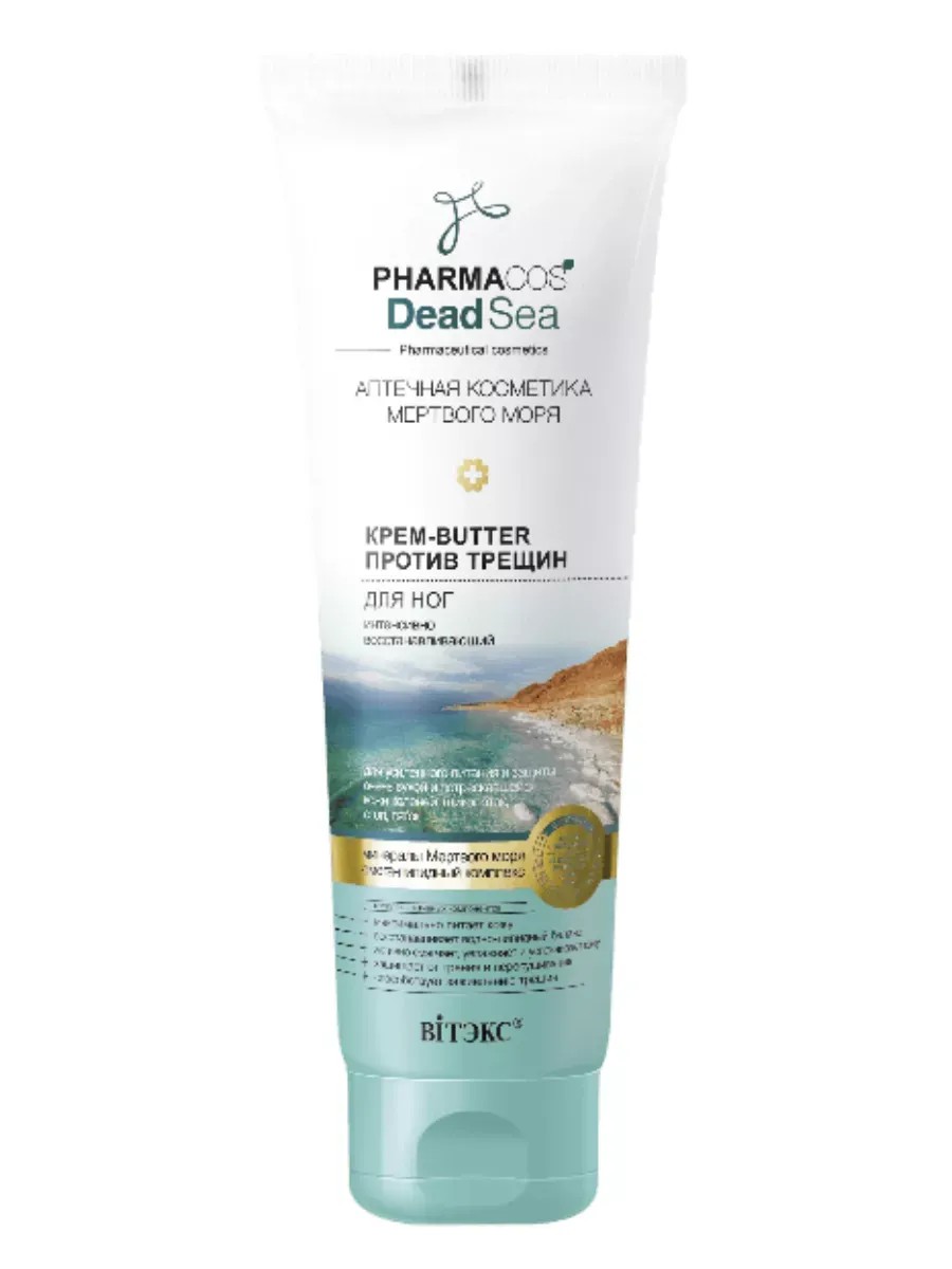 Крем-butter для ног против трещин интенсивно восстанавливающий «Pharmacos Dead Sea» от белорусского бренда Витекс — это идеальное средство для комплексного ухода за кожей ваших ног. Уходовая косметика с насыщенной формулой содержит специально разработанный омега-липидный комплекс и целебные минералы Мертвого моря для интенсивного восстановления, смягчения и оздоровления кожи ног. Крем с мочевиной разработан специально для ухода за кожей ног, склонной к сухости и появлению трещин. Для усиленного питания и защиты очень сухой и потрескавшейся кожи коленей, щиколоток, стоп, пяток. Крем баттер для тела и ног обладает насыщенной текстурой, которая быстро впитывается, не оставляет ощущения жирности и липкости. Крем для ног с мочевиной помогает эффективно бороться с трещинами и натоптышами, смягчая и разглаживая кожу. Мочевина – высокоэффективный увлажнитель, который быстро улучшает состояния кожи, вызванные сухостью. Увлажняющий крем для ног содержит натуральные масла, такие как кокосовое, масло бабассу и кунжута, которые питают и увлажняют сухую кожу. Уход за ногами с экстрактом алоэ и соли Мёртвого моря способствуют восстановлению и регенерации кожи, придавая ей здоровье и мягкость. Крем для ног с мочевиной от трещин и натоптышей, активно борется с сухостью на пятках, предотвращая появление трещин и обеспечивая долговременное увлажнение. Крем для пяток от трещин и сухости специально разработанная формула помогает заживлять трещины и улучшает общее состояние кожи ног. Белорусская косметика линии «Pharmacos Dead Sea Аптечная косметика Мертвого Моря» Витэкс соединены тысячелетние традиции, старинные рецепты и новейшие достижения современной науки, что позволяет наиболее полно раскрыть и сохранить все целебные свойства природных компонентов. Крем для ног увлажняющий и смягчающий от Vitex станет вашим надежным помощником в уходе за кожей, обеспечивая ей необходимое питание и защиту. Подарите своим ногам заботу и комфорт с кремом для ног от трещин и сухости на пятках!