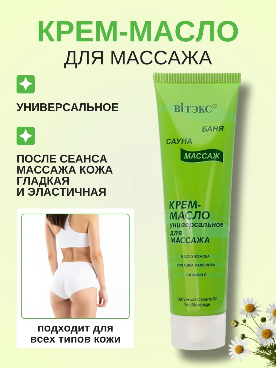 Если вы любите радовать кого-то расслабляющим массажем или же часто делаете его по роду своей деятельности, крем-масло белорусского производителя Витэкс вам просто необходимо! Попробовав его в действии, вы не захотите больше возвращаться к старым маслам! Формула этого продукта столь сбалансирована, что делать массаж с ним - одно удовольствие. Натуральные масла календы, ромашки и жожоба, которые присутствуют в составе этого массажного средства, улучшают циркуляцию крови в периферических кровеносных сосудах. Масло зародышей пшеницы и семян подсолнуха восстанавливают воднолипидную пленку кожи, тем самым повышая ее защитные свойства. Курс массажей, проведенный с крем-маслом Витэкс, не только снимает напряжение в мышцах и повышает жизненный тонус, но также убирает болевые ощущения и отеки. Основано на природных маслах жожоба, календулы, ромашки, которые стимулируют периферическую микроциркуляцию. Содержит масло семян подсолнуха, зародышей пшеницы, которые повышают барьерную функцию кожи, а также восстанавливают ее липидную мантию. После проведения курса массажа кожа становится гладкой и эластичной.С его помощью можно делать антицеллюлитный баночный массаж и массаж суставов. Данный продукт несомненно оценят те, кто плохо переносит парфюмерные отдушки, ведь он не имеет запаха!