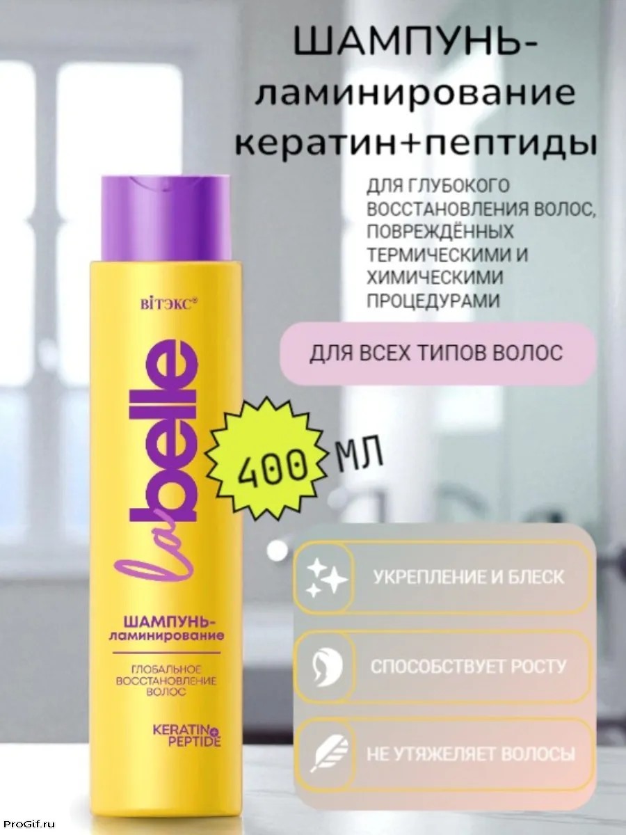 | Полное наименование товара | VT La Belle Шампунь-ламинирование глобальное восстановление волос кератин + пептиды, 400 мл. |