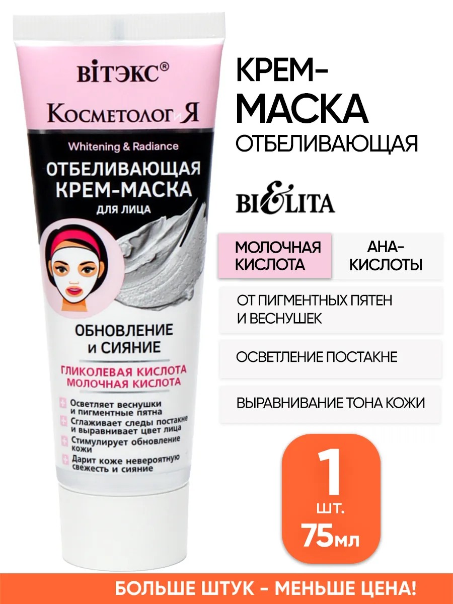 Отбеливающая кремовая маска от белорусского производителя Витекс для лица. Продукт просто незаменим в уходе за эпидермисом с пигментными темными пятнами и возрастной пигментацией. Выравнивающая уходовая маска из Беларуси Belita представляет собой эффективное средство для зрелой и тусклой кожей. Идеально подходит для молодой и комбинированной.