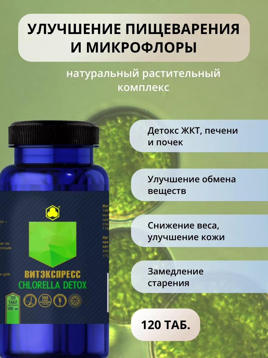 ВитЭкспресс Хлорелла Детокс 120 таб. для пищеварения и снижения веса