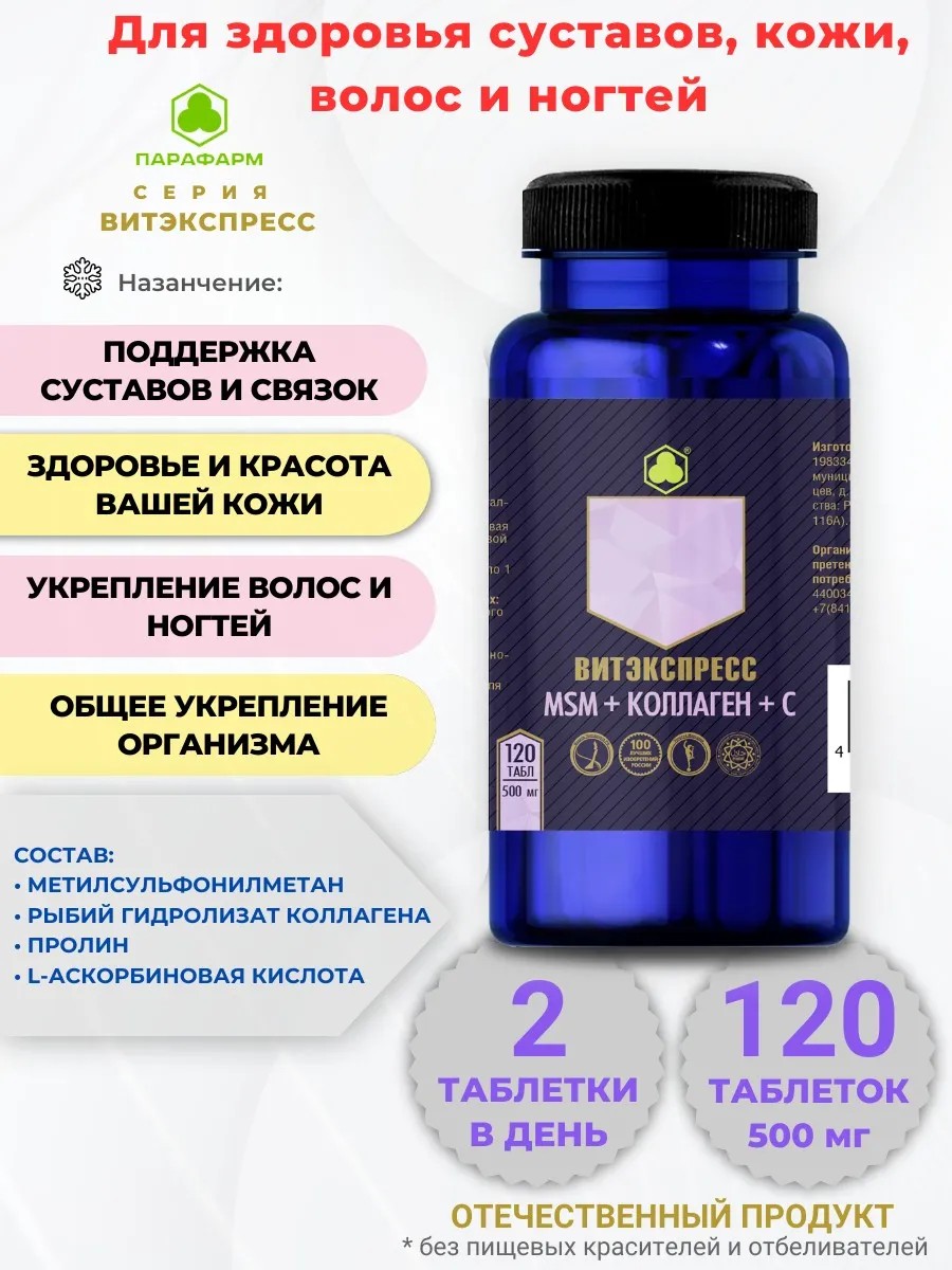Представляем вашему вниманию уникальный продукт для поддержания здоровья суставов и кожи — MSM + Коллаген + Витамин С серии Витэкспресс. Этот комплекс создан для тех, кто хочет сохранить молодость и подвижность, ведь здоровье суставов и красота кожи — это не только о внешности, но и о качестве жизни.