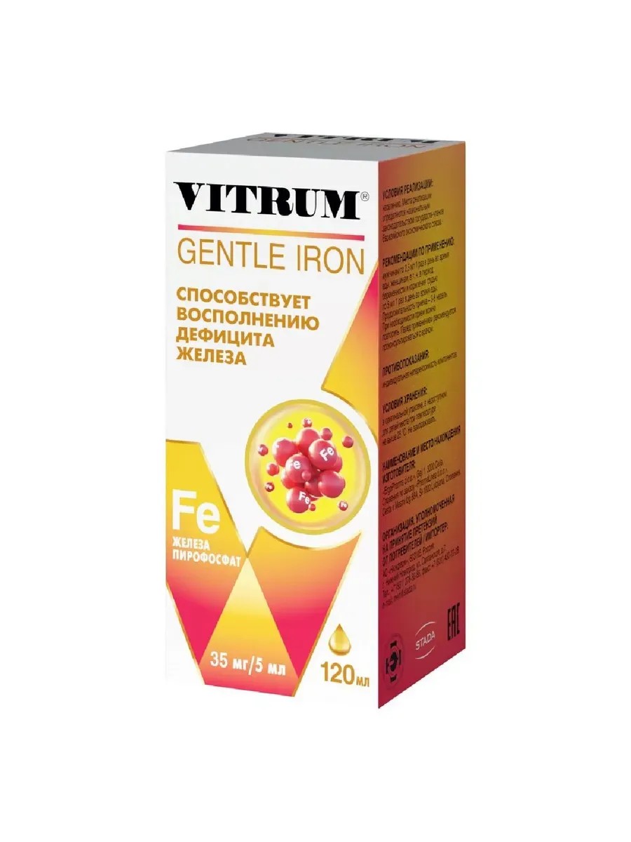 ВИТРУМ ЛЕГКОДОСТУПНОЕ ЖЕЛЕЗО - Биологически активная добавка (БАД) к пище - способствует восполнению дефицита железа. БАД содержит в 5 мл 35 мг микрокапсулированного железа (пирофосфат трехвалентного железа), применение которого позволяет повысить его всасываемость (экспериментальные данные) и имеет более низкие риски проявления нежелательных эффектов солей двухвалентного железа. Применение микрокапсулированного железа может быть полезно людям с высоким риском дефицита железа.