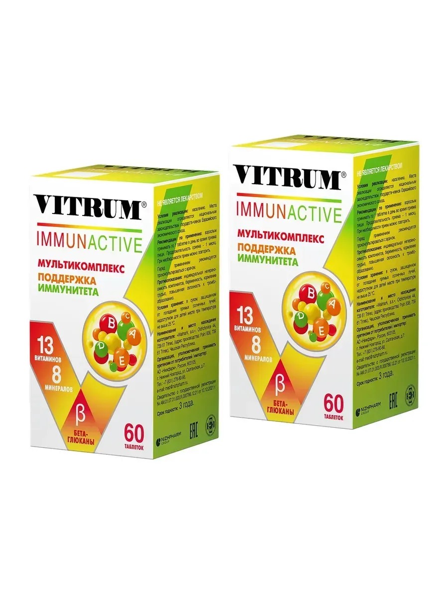 Витрум Иммунактив - это биологически активная добавка (БАД) к пище, которая способствует поддержанию иммунной системы. Препарат содержит комплекс витаминов и минералов, необходимых для крепкого здоровья организма. Витрум Иммунактив рекомендуется для профилактики простудных заболеваний, а также для повышения иммунитета в период восстановления после болезней. Препарат прост в применении и имеет удобную форму выпуска - таблетки, покрытые оболочкой.