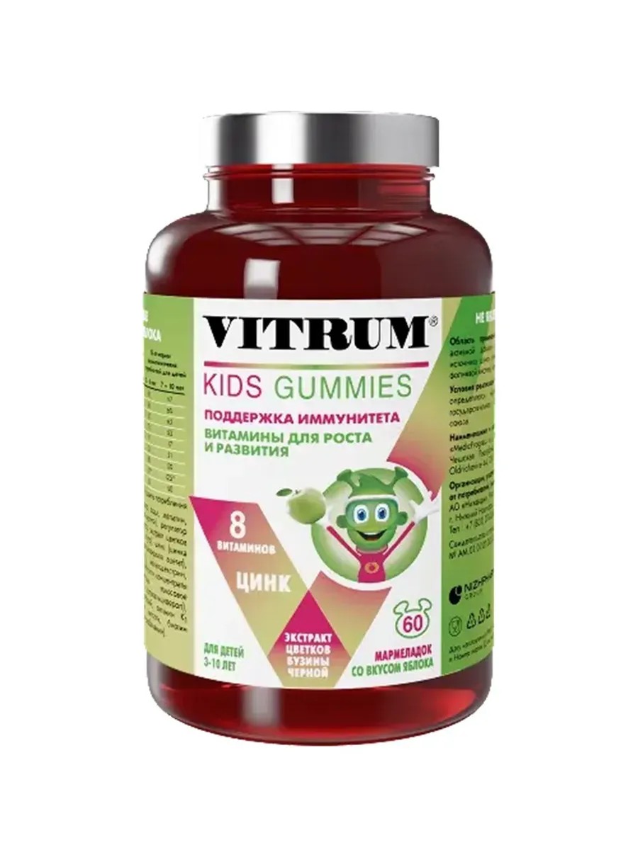 Trade nameBiologically active food supplement "VITRUM® Kids Gummies" with apple flavor." Release form: chewable gummies weighing 3500 mg.