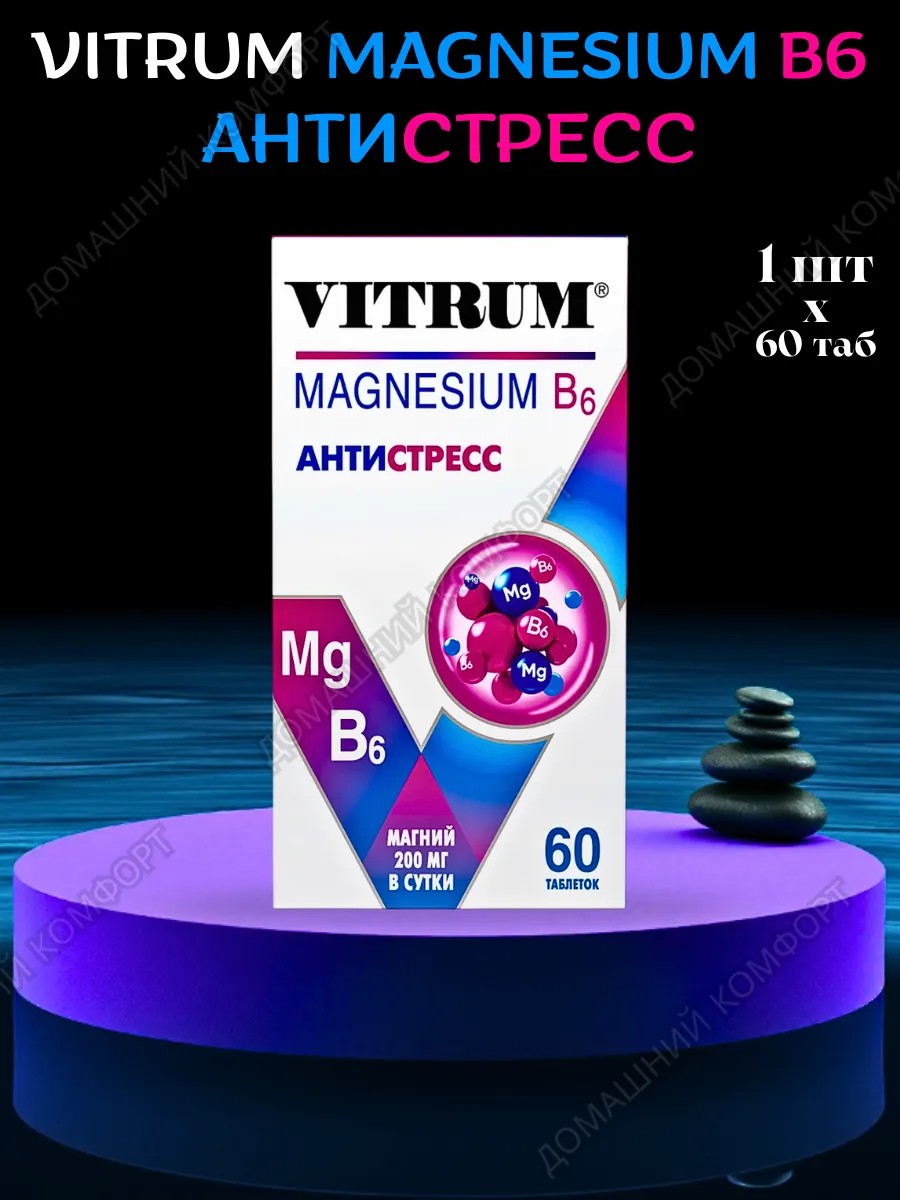 Стресс, усталость, проблемы со сном? БАД Витрум Магний В6 — это надежный помощник для вашего организма. Этот сбалансированный комплекс сочетает два мощных элемента: магний, отвечающий за энергию и здоровье мышц, и витамин В6, который усиливает его усвоение и помогает нервной системе справляться с нагрузками.