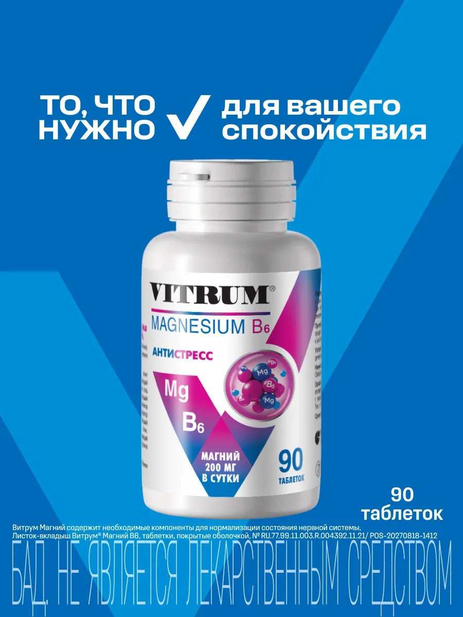 Витрум Магний В6 - это биологически активная добавка к пище, которая содержит магний и витамин В6.