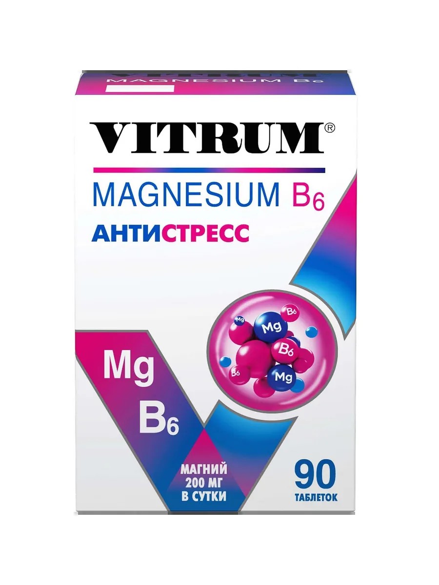 | Торговое наименование | биологически активная добавка к пище "ВИТРУМ Магний В6 (VITRUM Magnesium B6)" (таблетки, покрытые оболочкой массой 1200 мг) |