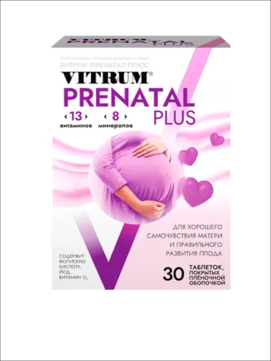 Vitrum Prenatal Plus is used as a biologically active food supplement - an additional source of vitamins A, D3, E, C, B1, B2, B5, B6, B12, niacin, folic acid, biotin; minerals: zinc, iron, copper, manganese, iodine, chromium, selenium, containing calcium for pregnant and lactating women.