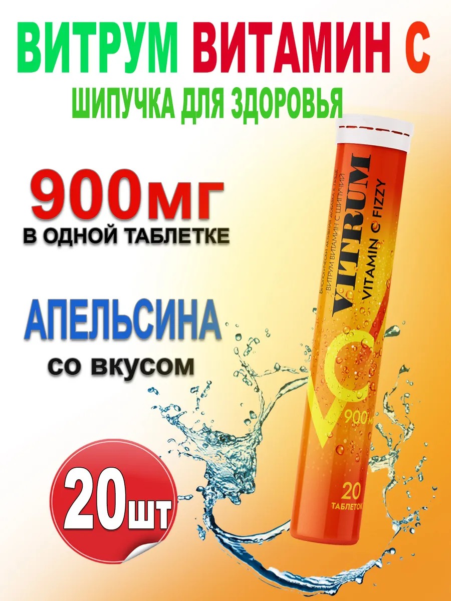 Vitrum Vitamin C dietary supplement is a source of ascorbic acid, which is essential for the body during seasonal illnesses and the treatment of acute respiratory viral infections. This dietary supplement is suitable for COVID-19 prevention, immune support, and chronic fatigue. One effervescent tablet contains 900 mg of vitamin C, has a pleasant taste, and dissolves quickly in water. Take one tablet during or after meals, dissolving the effervescent tablet in a glass of water. Do not take effervescent vitamins for more than two weeks.