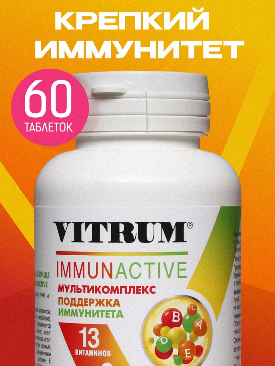 Vitrum Immunactive 60 pcs is a vitamin and mineral complex with an improved formula to replace Vitrum Plus, which is no longer produced. Vitrum Immunactive is a complex biologically active supplement (BAS) that contains vitamins, minerals, and plant extracts necessary to maintain health and normal functioning of the immune system.
