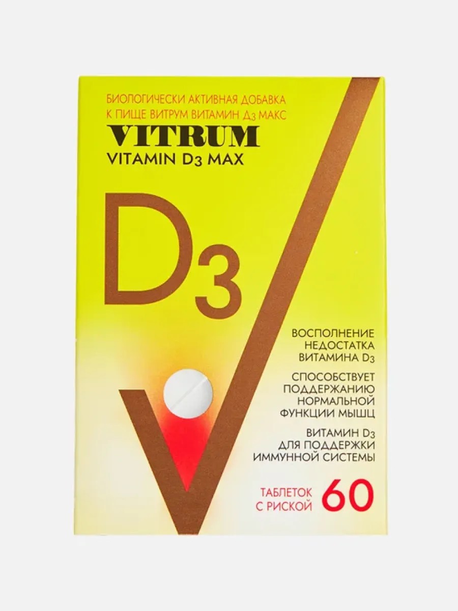 Для поддержания баланса кальция и фосфора, а также полноценного формирования зубов и костей нашему организму необходим витамин D3. Небольшое количество этого вещества поступает к нам с пищей, но этого недостаточно. Восполнить его нехватку поможет VITRUM vitamin d3 max — добавка для укрепления иммунитета и нормальной работы мышц.