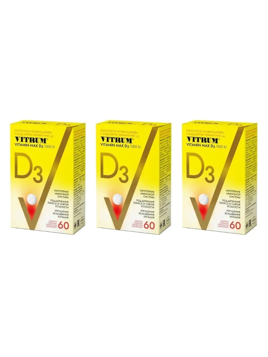 Витрум Витамин Д3 Макс для иммунной системы, 60 таб по 220 мг х 3уп