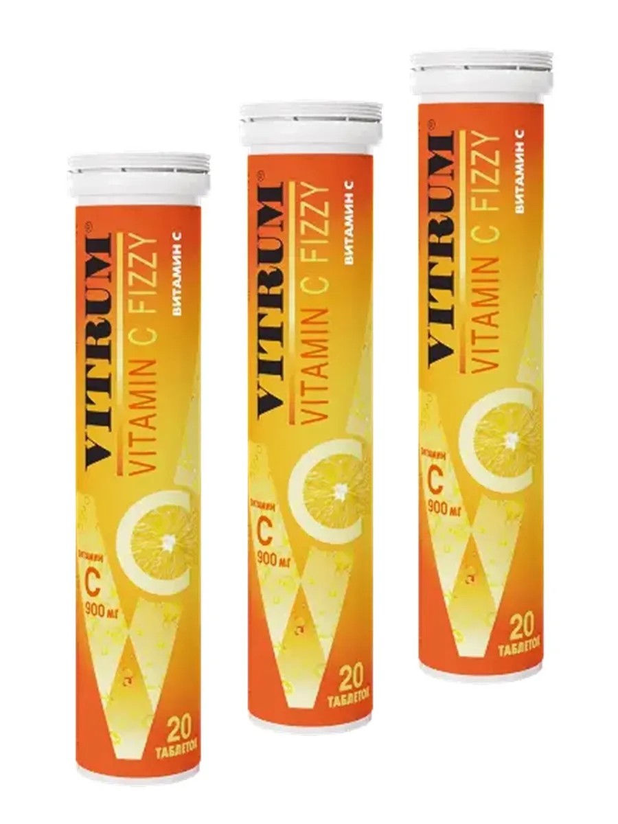Vitrum Vitamin C Effervescent is a dietary supplement (DS) available in 20 effervescent tablets weighing 3.8 grams each. This product is a source of ascorbic acid (vitamin C), which is essential for maintaining immunity and overall health. The effervescent tablets have a pleasant taste and dissolve quickly in water, allowing you to quickly get the necessary dose of vitamin C, especially during periods of active exercise, stress, or fatigue. Vitrum Vitamin C Effervescent is recommended for the prevention of COVID-19 and acute respiratory viral infections, and as an adjunct in the treatment of acute respiratory viral infections and chronic fatigue. Adults take one tablet daily during or after meals. Dissolve the tablet in a glass (200 ml) of drinking water before use.