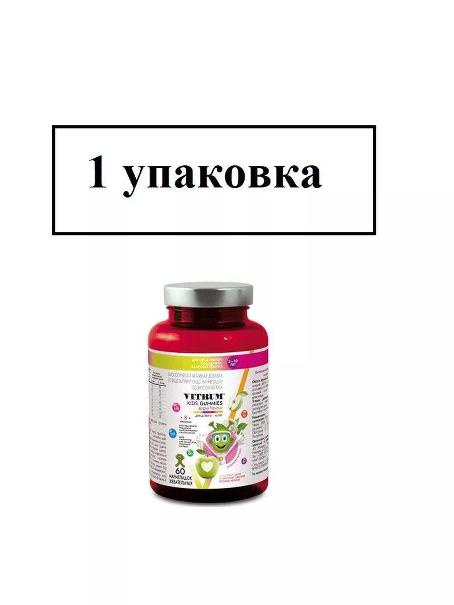 Витаминно-минеральный комплекс ВИТРУМ КИДС МАРМЕЛАДКИ СО ВКУСОМ ЯБЛОКА - для детей 3-10 лет. Новые мармеладки от VITRUM в форме забавных марсианчиков - это вкусный и удобный способ для заботы о здоровье маленьких непосед каждый день. Содержат сбалансированный набор витаминов и минералов: витамины Д3, С, Е, К, витамины группы В, цинк, и природный иммуномодулятор - экстракт цветков бузины черной, для укрепления иммунитета ребенка в период вирусных заболеваний.
