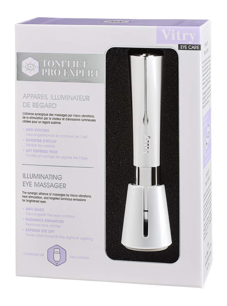 Eye lighting.The Toni'lift Pro Expert, a cosmetic stimulator with a triple effect, which activates the venous and lymphatic microcirculation of the eye area and ensures an immediately sublimated appearance.The synergistic alliance of massages through microvibrations, stimulation through heat and targeted light emissions for a sublimated look.Anti-pocket: the eye area defrosts.Booster de Éclat: Reduces dark circles.Lift Express Eyes: Ton and corrects signs of aging.