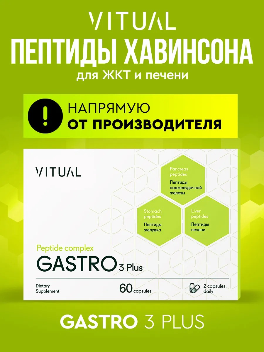 The natural polypeptide complex "Gastro 3 Plus" improves the function and accelerates the restoration of cells of the digestive tract and stimulates the synthesis of its own biologically active substances.
