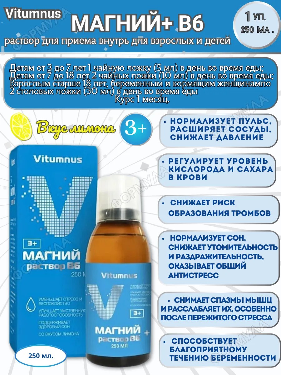 Vitumnus Магний+ В6 раствор для взрослых и детей 250мл.*1шт.