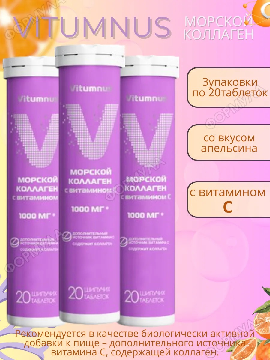 Комплектацияvitumnus морской коллаген с вит с таб шип. n20 со вкусом апельсина; 3 уп.