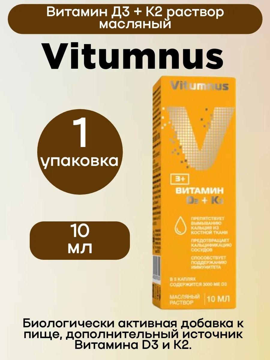Vitumnus Витамин D3+K2 масляный раствор 10мл/1уп