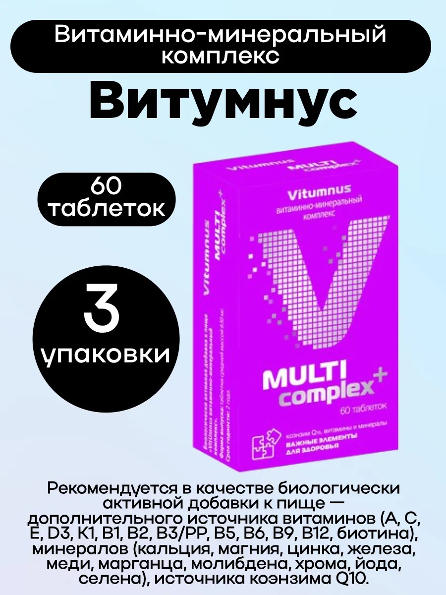 Комплекс витаминов и минералов VitUmnus — универсальный источник необходимых организму витаминных и минеральных веществ, а также коэнзима Q10, способствующего замедлению процессов старения. Комплекс отличается усиленными дозировками элементов, которые вновь приобрели актуальность в связи с ритмом и образом жизни современных людей.