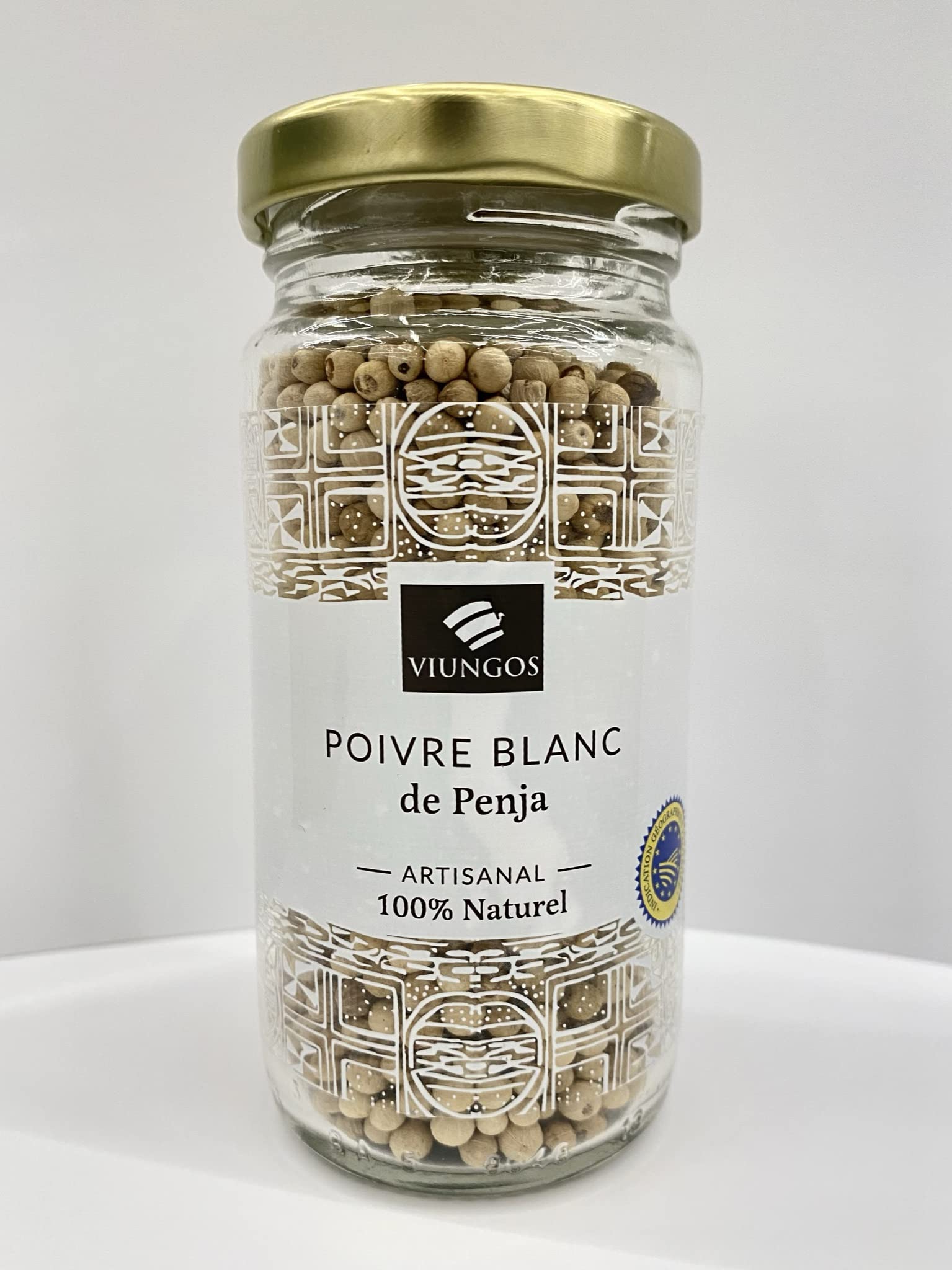 Penja pepper comes from the volcanic region of the same name with a humid tropical climate, located 70km from Douala in the Littoral province of Cameroon. Recognized worldwide, it is labeled PGI. Less spicy and milder than black pepper, Penja white pepper has a beautiful length in the mouth with both woody and musky notes. Very aromatic, it is the master's touch for our various menus. On the health side, Penja white pepper helps cleanse the digestive system, regulate satiety and accelerate the elimination of calories. It also has stimulating and antiseptic properties INGREDIENTS pepperSpice with character, spicy and woody. Le poivre de Penja provient de la région volcanique du même nom au climat tropical humide, située à 70km de Douala dans la province du Littoral au Cameroun. Reconnu à l'échelle mondiale, il est labellisé IGP. Moins piquant et plus doux que le poivre noir, le poivre blanc de Penja possède une belle longueur en bouche avec des notes à la fois boisées et musquées. Très aromatisé, il est la touche du maître pour nos différents menu. Côté santé, Le poivre blanc de Penja aider à nettoyer le système digestif, réguler la satiété et accélérer l'élimination des calories. Il a également des vertus stimulantes et antiseptiques INGRÉDIENTS poivreEpice de caractère, piquant et boisé.