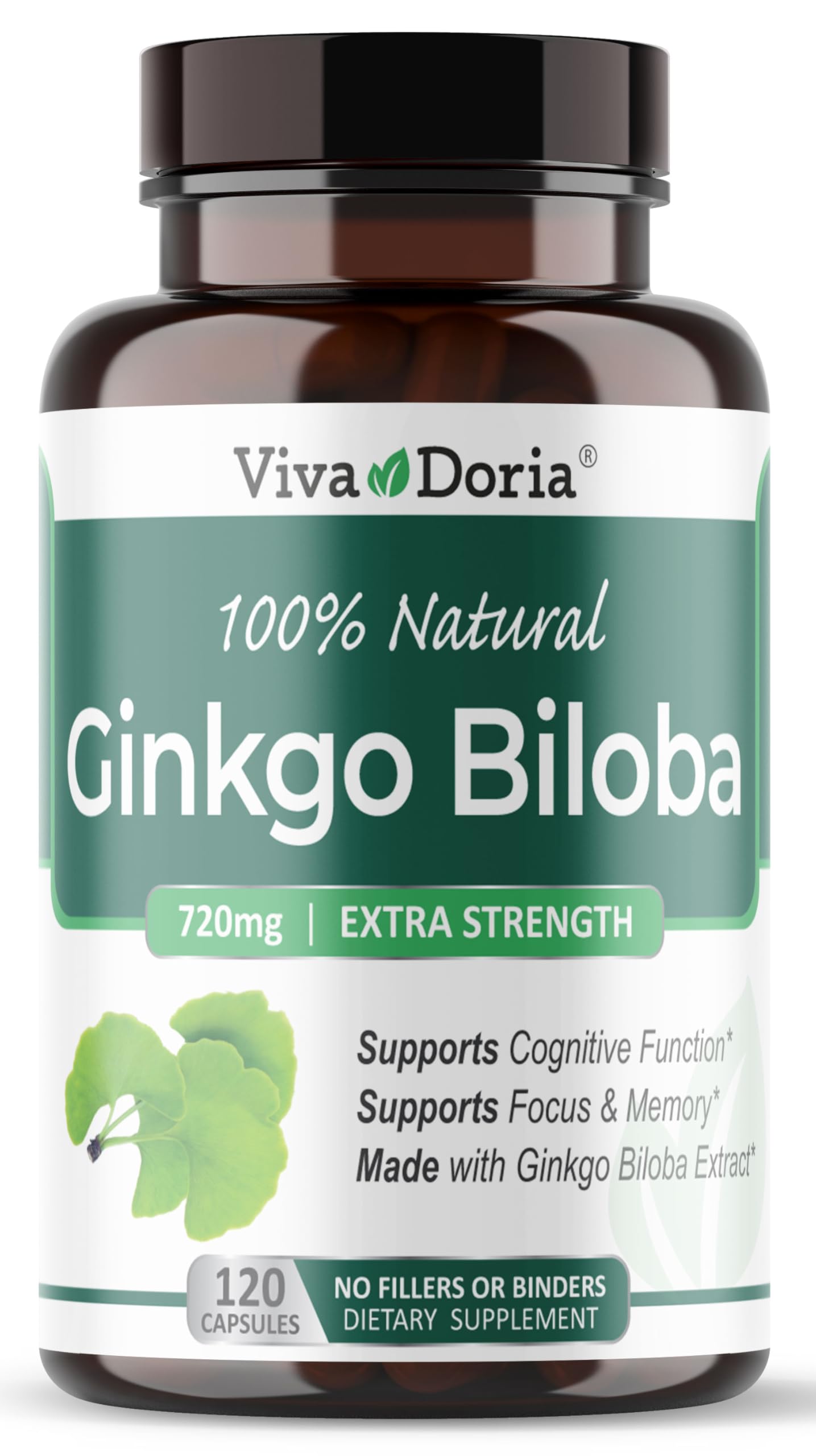 Viva Doria Ginkgo Biloba 720mg, Supports Brain Function & Memory Support, 120 Vegetable Capsules