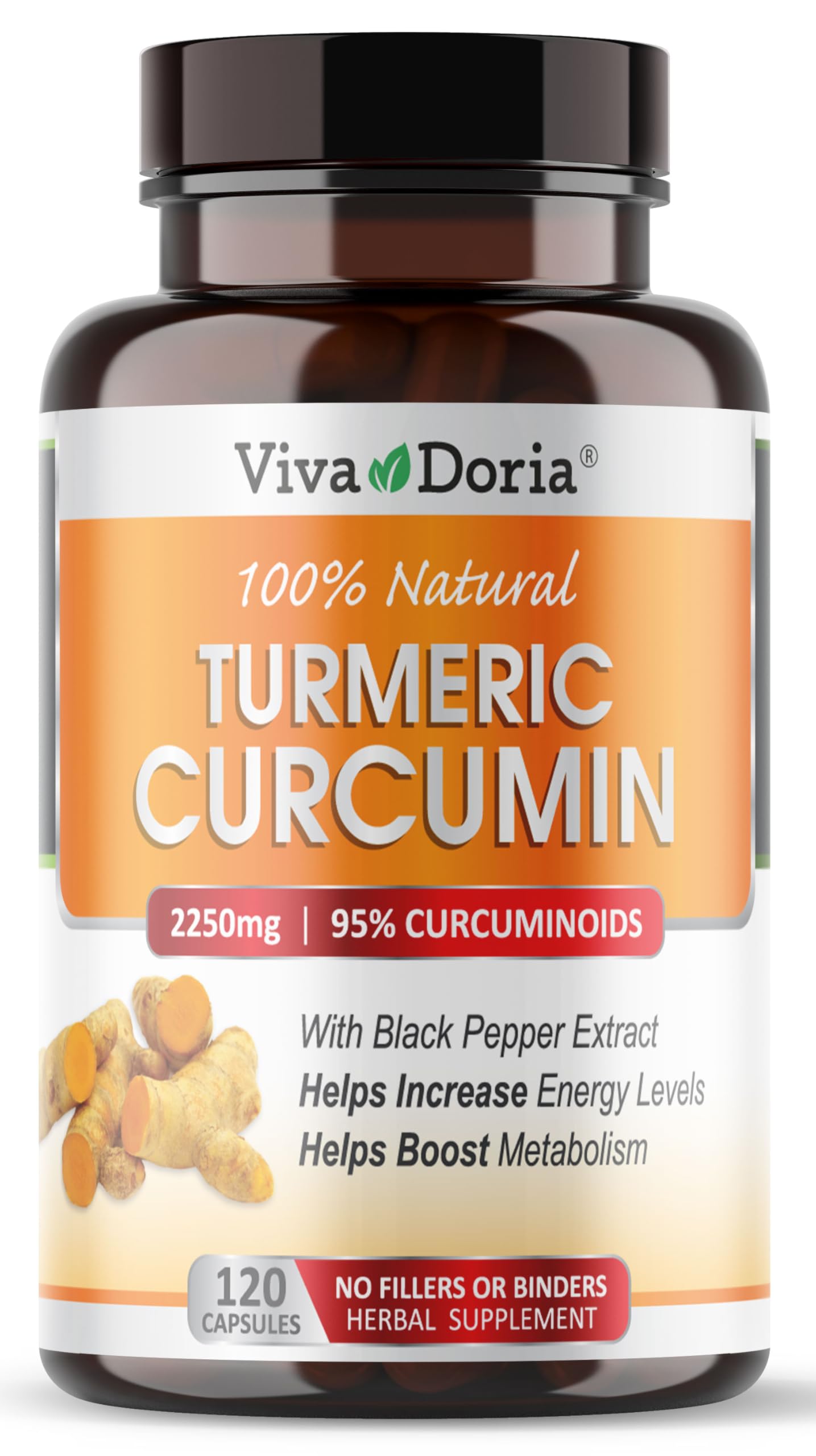 Viva Doria Turmeric Curcumin with Black Pepper Extract 2250mg 95% Standardized Curcuminoids - Black Pepper for Max Absorption 120 Vegetable Capsules