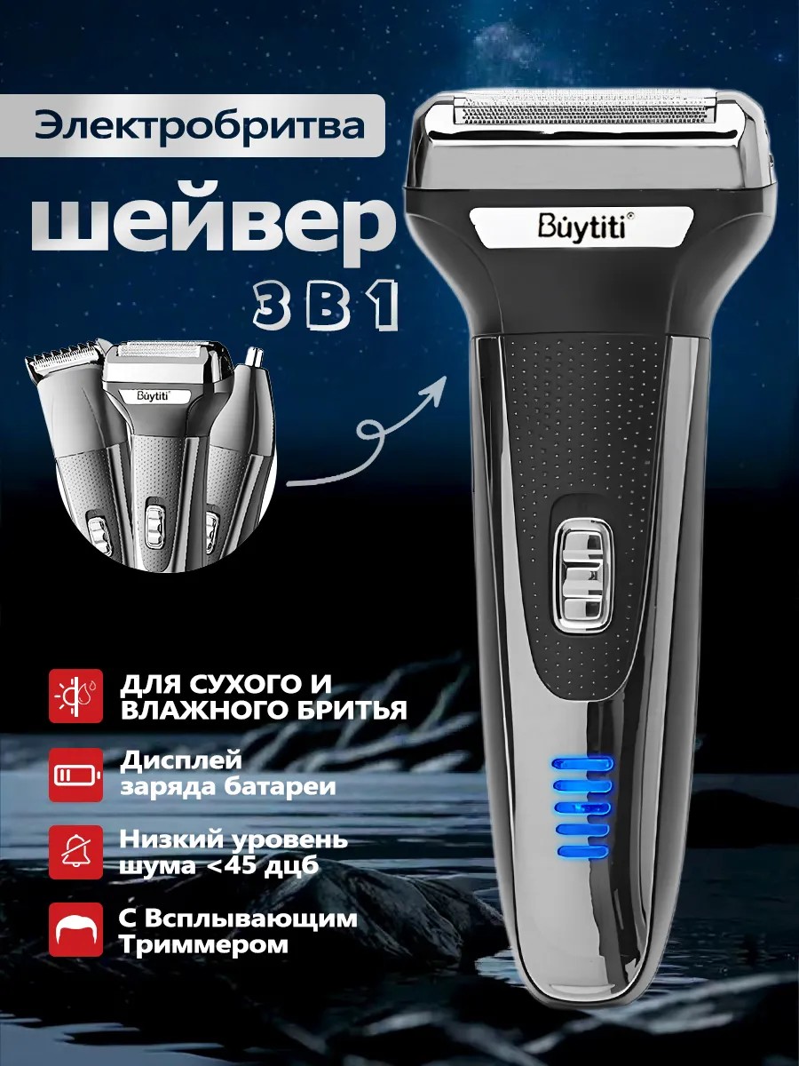 Многофункциональный прибор объединяет в себе функции электробритвы, триммера и машинки для стрижки. Компактный и легкий дизайн делает его удобным в использовании и транспортировке.