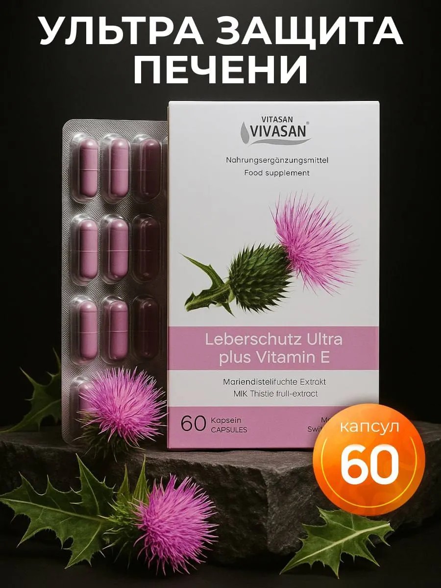 Vivasan Натуральный бад УЛЬТРА ЗАЩИТА ПЕЧЕНИ ПЛЮС ВИТАМИН Е 60шт