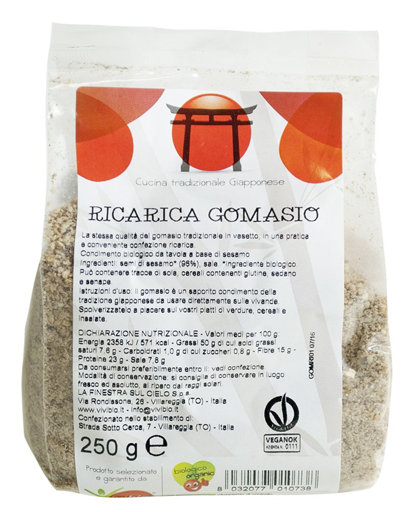 A practical refill pack for sesame and salt, which is always kept in the glass jar. A tasty, traditional Japanese spice that can be used directly on dishes. Sprinkle it on your muesli or vegetable dishes as desired. INGREDIENTS Ingredients: SESAMO seeds (96 ), salt. Organic ingredient. INSTRUCTIONS FOR USE Sprinkle over your favorite dishes for a savory touch. See moreVivibio Navulverpakking Gomasio, BIO, 250 g Een praktische navulverpakking voor sesam en zout, die altijd in de glazen pot is gehouden. Een smakelijke, traditionele Japanse specerij die direct op gerechten kan worden gebruikt. Bestuif het naar wens op je muesli- of groentegerechten. INGREDIËNTEN Ingrediënten: SESAMO zaden (96 ), zout. Biologisch ingrediënt. GEBRUIKSAANWIJZING Strooi over je favoriete gerechten voor een hartige touch. Meer bekijken