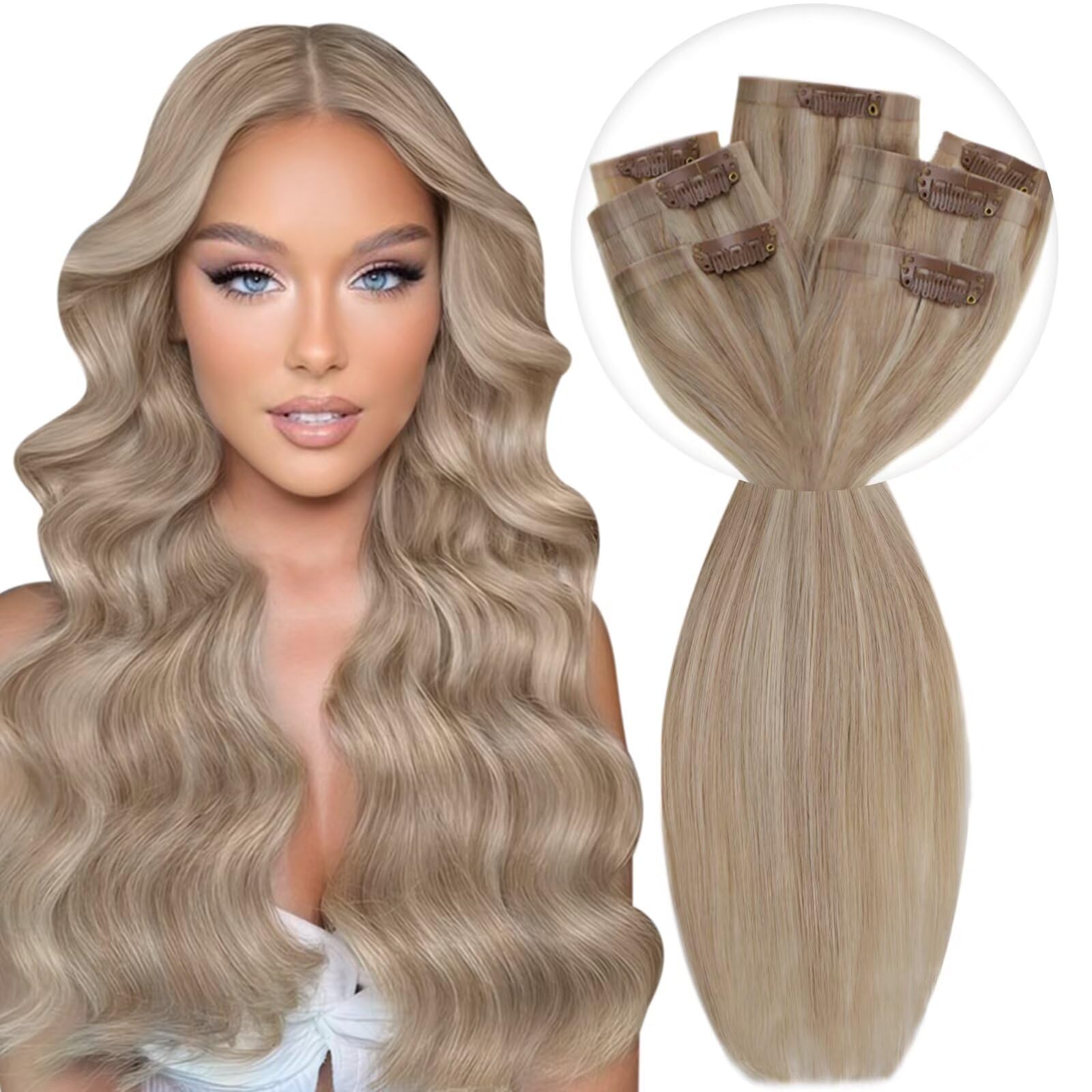 Vivien hair extensions are made of human hair.Compared to normal top clip-in hair extensions, PU clip is more seamless and is not so easy and is thinner.In addition, there is no tip on the clip, so that our hair extensions fit better on the scalp.Vivien Seamless Clip in Hair Extensions Real Hair can help you change your look and get more thickness in a few minutes.And you can do it yourself and without the help of someone!Make our customers even more beautiful!Specification hair type: clip in hair extensions human hair length: 14-22 inches available.Weight: 14 ""-18"" are 120 grams / pack, 20 ""-22"" 140 grams / pack of hair life: depending on good use and care.Number of poles: 7 PU sticks in different widths to meet the needs of different head areas.Number of clips: a total of 16 clips.Quantity: 1–2 packs for more volume, 2–3 packs for more length.Before ordering, please read the colors based on the actual products, there may be slight differences due to different lighting conditions and monitor settings.The hair is processed, they can only be colored into a darker color.Please use a comb with wide teeth.Use a mild shampoo, conditioner and cold or warm water to wash the hair.Dry your hair over low heat. Warnings Uncharged ?Naturally and shiny? There are different balayage, ombre, highlight color.there could be slight color differences between the pictures and hair due to different monitors.If there is any problem, please let us know.?Easy to wear or take out? Our PU real hair extensions are easy and quick to use.Everyone can wear or take them out at any time.We use a double shot technology to make PU clip hair extensions more soft.?Seamless clip in real hair extensions? Real real hair extensions, soft as your own hair.Our clip in real hair extensions can take 2-3 months with good care.Please note our website and instructions for care.?Instant Length and Volume? Our PU clip in real hair extensions have 7 pieces.100g (14-18inch)/130g (20-22inch) for hair extensions with PU clips.You can change the view of 1-2 pack of product to visit every occasion at any time.?Vivien seamless clip in hair extensions? Our new PU clip in real hair extension presses the hair on the PU with the clips that make the products more invisible, more convenient, natural.The PU design adapts more invisible to your scalp. Vivien Haarverlängerungen sind aus menschlichem Haar. Im Vergleich zu normalen Spitzen-Clip-in-Haarverlängerungen ist PU Clip nahtloser und fällt nicht so leicht aus und ist dünner. Außerdem gibt es keine Spitze auf dem Clip, so dass unsere Haarverlängerungen besser auf der Kopfhaut passen. Vivien Seamless Clip in Hair Extensions Real Hair kann Ihnen helfen, Ihren Look zu ändern und in wenigen Minuten mehr Dicke zu erhalten. Und Sie können es selbst und ohne Hilfe von jemandem tun! Machen Sie unsere Kunden noch schöner! Spezifikation Haartyp: Clip in Haarverlängerungen Menschliches Haar Länge: 14-22 Zoll verfügbar. Gewicht: 14 ""-18"" sind 120 Gramm / Packung, 20 ""-22"" sind 140 Gramm / Packung Haarlebensdauer: abhängig von guter Verwendung und Pflege. Anzahl der Stangen: 7 PU-Stangen in verschiedenen Breiten, um die Bedürfnisse verschiedener Kopfbereiche zu erfüllen. Anzahl der Clips: Insgesamt 16 Clips. Menge: 1–2 Packungen für mehr Volumen, 2–3 Packungen für mehr Länge. Bitte lesen Sie vor der Bestellung die Farben basierend auf den tatsächlichen Produkten, es kann leichte Unterschiede aufgrund unterschiedlicher Lichtverhältnisse und Monitoreinstellungen geben. Das Haar wird verarbeitet, sie können nur zu einer dunkleren Farbe gefärbt werden. Bitte verwenden Sie einen Kamm mit breiten Zähnen. Verwenden Sie zum Waschen der Haare ein mildes Shampoo, Conditioner und kaltes oder warmes Wasser. Trocknen Sie Ihre Haare bei schwacher Hitze. WARNHINWEISE uncharged?Natürlich und glänzend?Es gibt verschiedene Balayage, Ombre, Highlight color.There könnte leichte Farbunterschiede zwischen den Bildern und Haar aufgrund unterschiedlicher Monitore sein. Wenn es irgendein Problem gibt, lassen Sie uns bitte wissen. ?Easy to Wear or Take out?Unsere PU Echthaarverlängerungen sind einfach und schnell zu verwenden. Jeder kann sie jederzeit tragen oder herausnehmen. Wir verwenden eine doppelte Schuss-Technologie, um PU Clip Haarverlängerungen mehr weich zu machen. ?Nahtlose Clip in Echthaarverlängerungen?Echte Echthaarverlängerungen, weich wie Ihr eigenes Haar. Unsere Clip in Echthaarverlängerungen können 2-3 Monate mit guter Pflege dauern. Bitte beachten Sie unsere Seite und Anweisungen für die Pflege. ?Instant Length and Volume?Unsere PU Clip in Echthaarverlängerungen haben 7 Stück. 100g(14-18inch)/130g(20-22inch) für Haarverlängerungen mit PU-Clips. Sie können den Blick von 1-2 Packung Produkt ändern, um jeden Anlass zu jeder Zeit zu besuchen. ?Vivien Nahtlose Clip in Haarverlängerungen? Unsere neue PU Clip in Echthaarverlängerung drückt das Haar auf das PU mit den Clips, die die Produkte unsichtbarer, bequemer, natürlicher machen. Das PU-Design passt sich Ihrer Kopfhaut unsichtbarer an.Vivien Clip in Extensions Echthaar Blond Extensions Echthaar Clip in Aschblond mit Bleichblond Extensions Clip in Echthaar Haarverlängerung #18/613 55cm 140g/7pcs 22 Zoll-140g-Clip-PU 1-1 CP #18/613