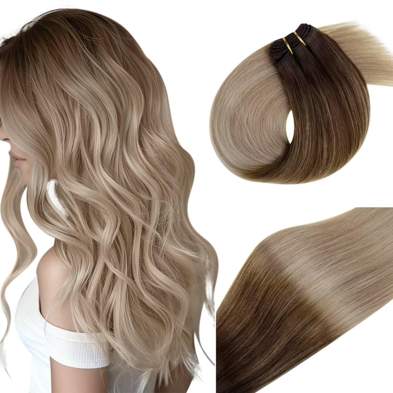Vivien is committed to the production of real hair extensions made of real real hair and has a professional production team and its own factory that focuses on every link in production.Our endeavor is to help every woman and every girl to become more confident and elegant.Material: Remy Human Hair.Texture: silk -smooth, thick from top to bottom.Recommendation: We recommend 1 ~ 2 packs for thick hair and 2 ~ 3 packs for thin hair.Lifespan: 1-2 months, with correct application and care even longer.Comb your hair before washing, avoid knot, wash it with warm water and use natural hair care products that do not contain sulfates.Of course, let it dry in the air to maintain the moisture and elasticity of the hair extension.Remy-Haar can be blowed up, smoothed and lured like her own hair, but the temperature during styling should be less than 150 degrees Celsius. Warnings Uncharged ?Important note? Due to lighting and display reasons, the color of the image can be different from the real object.?Four supporting methods, for different requirements? Clip in, band in, sewing in or micro-link: real ""look what I want"" .diy hairstyles should not be restricted by the type of extensions.?SEW in hair extensions real human hair? Vivien weft hair extensions is made of real human hair, so that it inevitably has the same slightly knotted and curved quality as natural hair.To bleach and the temperature of the curling bar should be kept by 150 ?.?SEW in Hair Extensions Double Weft? The short hair is available at the root of the hair shot for the double shot process, with the aim of largely avoiding hair drop.?Vivien Remy Human Hair Extensions Human Hair? 14inch: 80g 16-24inch: 100g.The width of the shot depends on the length of the hair. Vivien hat sich der Herstellung von Echthaarverlängerungen aus echtem Echthaar verschrieben und verfügt über ein professionelles Produktionsteam und eine eigene Fabrik, die sich auf jedes Glied der Produktion konzentriert. Unser Bestreben ist es, jeder Frau und jedem Mädchen zu helfen, selbstbewusster und eleganter zu werden.Type: Einnähen Haarverlängerungen Echthaar. Material: Remy Human Hair. Textur: Seidenglatt, dick von oben bis unten. Empfehlung: Wir empfehlen 1~2 Packungen für dickes Haar und 2~3 Packungen für dünnes Haar. Lebensdauer: 1-2 Monate, bei richtiger Anwendung und Pflege auch länger. Kämmen Sie Ihr Haar vor dem Waschen, vermeiden Sie Knoten, waschen Sie es mit warmem Wasser und verwenden Sie natürliche Haarpflegeprodukte, die keine Sulfate enthalten. Natürlich an der Luft trocknen lassen, um die Feuchtigkeit und Elastizität der Haarverlängerung zu erhalten. Remy-Haar kann wie Ihr eigenes Haar geföhnt, geglättet und gelockt werden, allerdings sollte die Temperatur beim Styling unter 150 Grad Celsius liegen. WARNHINWEISE uncharged?Wichtiger Hinweis?Aufgrund von Licht- und Anzeigegründen kann die Farbe des Bildes von dem realen Objekt verschieden sein. ?Vier Tragemethoden, für verschiedene Anforderungen?Clip in, Band in, nähen in oder Mikro-Link: echtes ""Aussehen, was ich will"".DIY-Frisuren sollten nicht durch die Art der Erweiterungen eingeschränkt werden. ?Sew in Hair Extensions Real Human Hair?Vivien Weft Hair Extensions ist aus echtem menschlichem Haar, so dass es zwangsläufig die gleiche leicht verknotete und gebogene Qualität wie natürliches Haar hat.Sie können es nach Ihren eigenen Bedürfnissen färben, bitte achten Sie darauf, nicht zu bleichen, und die Temperatur des Lockenstabs sollte um 150? gehalten werden. ?Sew in Hair Extensions Double Weft?Das kurze Haar ist an der Wurzel des Haarschusses für den doppelten Schussprozess vorhanden, mit dem Ziel, den Haarabwurf weitgehend zu vermeiden, langlebiger. ?Vivien Remy Human Hair Extensions Human Hair?14inch:80g 16-24inch:100g. Die Breite des Schusses hängt von der Länge des Haares ab.Vivien Extensions Echthaar Tressen Remy Echthaar Tressen Extensions Dunkelbraun Ombre zu Honigblond Gemischt Platinblond Tressen Extensions Echthaar 20 Zoll/50cm 100g #4/14/60 20 Zo11 2-1 Tressen #4/14/60