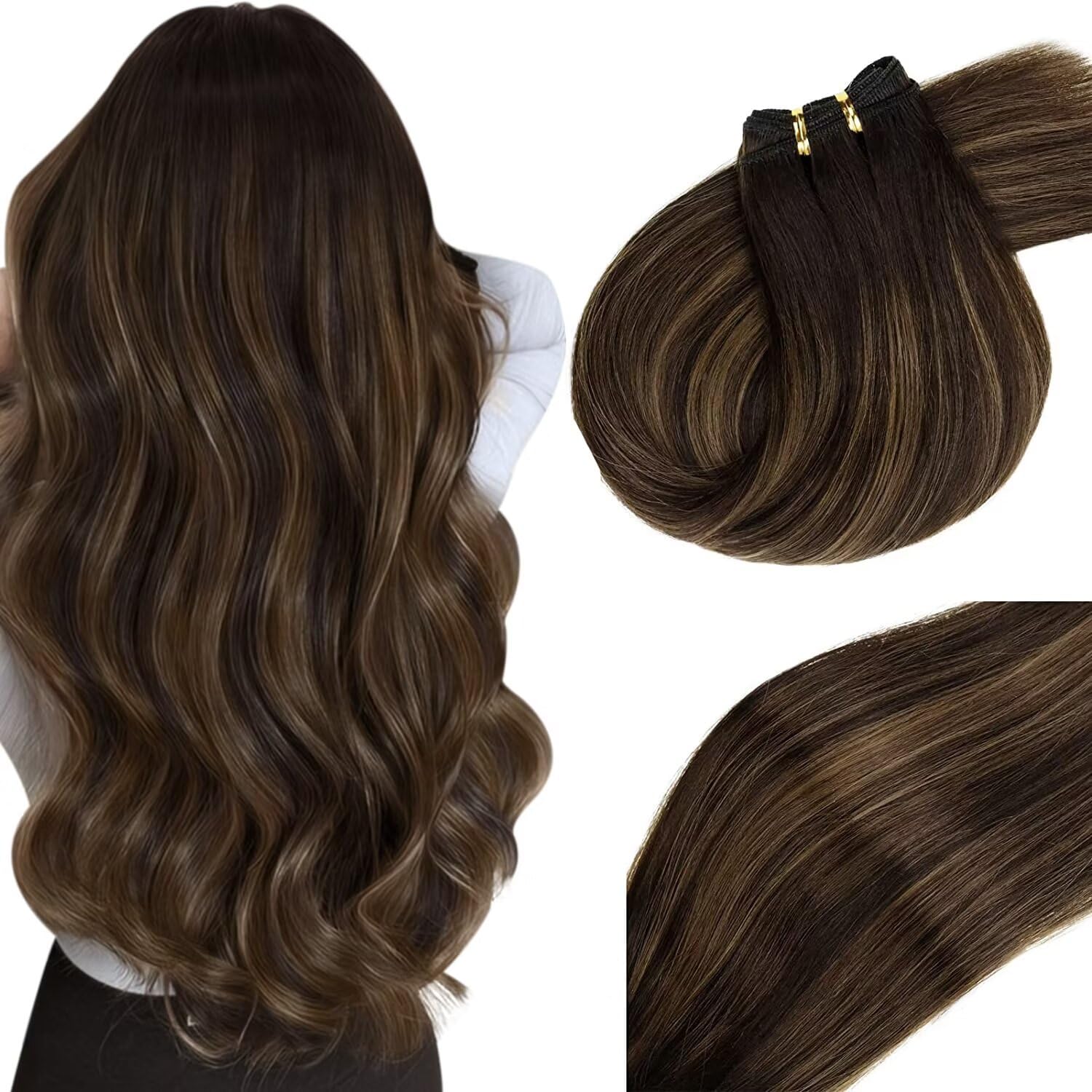 Vivien is committed to the production of real hair extensions made of real real hair and has a professional production team and its own factory that focuses on every link in production.Our endeavor is to help every woman and every girl to become more confident and elegant.Material: Remy Human Hair.Texture: silk -smooth, thick from top to bottom.Recommendation: We recommend 1 2 packs for thick hair and 2 3 packs for thin hair.Lifespan: 1-2 months, with correct application and care even longer.Comb your hair before washing, avoid knot, wash it with warm water and use natural hair care products that do not contain sulfates.Of course, let it dry in the air to maintain the moisture and elasticity of the hair extension.Remy-Haar can be blowed up, smoothed and lured like her own hair, but the temperature during styling should be less than 150 degrees Celsius. Warnings UnchargedImportant noteDue to lighting and display reasons, the color of the image can be different from the real object.Four supporting methods, for different requirementsClip in, band in, sewing in or micro-link: real ""look what I want"" .diy hairstyles should not be restricted by the type of extensions.SEW in hair extensions real human hairVivien weft hair extensions is made of real human hair, so that it inevitably has the same slightly knotted and curved quality as natural hair.To bleach and the temperature of the curling bar should be kept by 150 .SEW in Hair Extensions Double WeftThe short hair is available at the root of the hair shot for the double shot process, with the aim of largely avoiding hair drop.Vivien Remy Human Hair Extensions Human Hair14inch: 80g 16-24inch: 100g.The width of the shot depends on the length of the hair.Vivien hat sich der Herstellung von Echthaarverlängerungen aus echtem Echthaar verschrieben und verfügt über ein professionelles Produktionsteam und eine eigene Fabrik, die sich auf jedes Glied der Produktion konzentriert. Unser Bestreben ist es, jeder Frau und jedem Mädchen zu helfen, selbstbewusster und eleganter zu werden.Type: Einnähen Haarverlängerungen Echthaar. Material: Remy Human Hair. Textur: Seidenglatt, dick von oben bis unten. Empfehlung: Wir empfehlen 1 2 Packungen für dickes Haar und 2 3 Packungen für dünnes Haar. Lebensdauer: 1-2 Monate, bei richtiger Anwendung und Pflege auch länger. Kämmen Sie Ihr Haar vor dem Waschen, vermeiden Sie Knoten, waschen Sie es mit warmem Wasser und verwenden Sie natürliche Haarpflegeprodukte, die keine Sulfate enthalten. Natürlich an der Luft trocknen lassen, um die Feuchtigkeit und Elastizität der Haarverlängerung zu erhalten. Remy-Haar kann wie Ihr eigenes Haar geföhnt, geglättet und gelockt werden, allerdings sollte die Temperatur beim Styling unter 150 Grad Celsius liegen. WARNHINWEISE unchargedWichtiger HinweisAufgrund von Licht- und Anzeigegründen kann die Farbe des Bildes von dem realen Objekt verschieden sein. Vier Tragemethoden, für verschiedene AnforderungenClip in, Band in, nähen in oder Mikro-Link: echtes ""Aussehen, was ich will"".DIY-Frisuren sollten nicht durch die Art der Erweiterungen eingeschränkt werden. Sew in Hair Extensions Real Human HairVivien Weft Hair Extensions ist aus echtem menschlichem Haar, so dass es zwangsläufig die gleiche leicht verknotete und gebogene Qualität wie natürliches Haar hat.Sie können es nach Ihren eigenen Bedürfnissen färben, bitte achten Sie darauf, nicht zu bleichen, und die Temperatur des Lockenstabs sollte um 150gehalten werden. Sew in Hair Extensions Double WeftDas kurze Haar ist an der Wurzel des Haarschusses für den doppelten Schussprozess vorhanden, mit dem Ziel, den Haarabwurf weitgehend zu vermeiden, langlebiger. Vivien Remy Human Hair Extensions Human Hair14inch:80g 16-24inch:100g. Die Breite des Schusses hängt von der Länge des Haares ab.Vivien Echthaar Extensions Tressen Remy Extensions Tressen Echthaar Dunkelstes Braun Ombre Mittelbraun Balayage Tressen Echthaar Extensions 55cm 100g 2 8 2 22 Zo11 2-1 Tressen 2 8 2