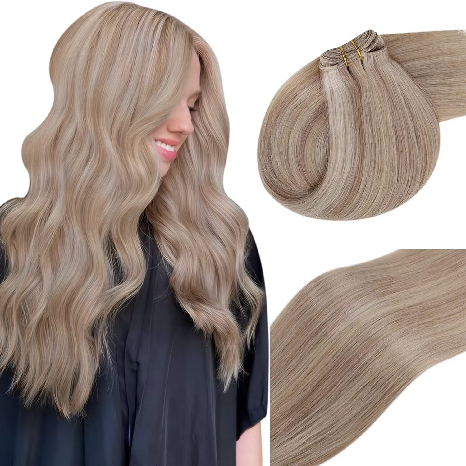 Vivien is committed to the production of real hair extensions made of real real hair and has a professional production team and its own factory that focuses on every link in production.Our endeavor is to help every woman and every girl to become more confident and elegant.Material: Remy Human Hair.Texture: silk -smooth, thick from top to bottom.Recommendation: We recommend 1 2 packs for thick hair and 2 3 packs for thin hair.Lifespan: 1-2 months, with correct application and care even longer.Comb your hair before washing, avoid knot, wash it with warm water and use natural hair care products that do not contain sulfates.Of course, let it dry in the air to maintain the moisture and elasticity of the hair extension.Remy-Haar can be blowed up, smoothed and lured like her own hair, but the temperature during styling should be less than 150 degrees Celsius. Warnings UnchargedImportant noteDue to lighting and display reasons, the color of the image can be different from the real object.Four supporting methods, for different requirementsClip in, band in, sewing in or micro-link: real ""look what I want"" .diy hairstyles should not be restricted by the type of extensions.SEW in hair extensions real human hairVivien weft hair extensions is made of real human hair, so that it inevitably has the same slightly knotted and curved quality as natural hair.To bleach and the temperature of the curling bar should be kept by 150 .SEW in Hair Extensions Double WeftThe short hair is available at the root of the hair shot for the double shot process, with the aim of largely avoiding hair drop.Vivien Remy Human Hair Extensions Human Hair14inch: 80g 16-24inch: 100g.The width of the shot depends on the length of the hair.Vivien hat sich der Herstellung von Echthaarverlängerungen aus echtem Echthaar verschrieben und verfügt über ein professionelles Produktionsteam und eine eigene Fabrik, die sich auf jedes Glied der Produktion konzentriert. Unser Bestreben ist es, jeder Frau und jedem Mädchen zu helfen, selbstbewusster und eleganter zu werden.Type: Einnähen Haarverlängerungen Echthaar. Material: Remy Human Hair. Textur: Seidenglatt, dick von oben bis unten. Empfehlung: Wir empfehlen 1 2 Packungen für dickes Haar und 2 3 Packungen für dünnes Haar. Lebensdauer: 1-2 Monate, bei richtiger Anwendung und Pflege auch länger. Kämmen Sie Ihr Haar vor dem Waschen, vermeiden Sie Knoten, waschen Sie es mit warmem Wasser und verwenden Sie natürliche Haarpflegeprodukte, die keine Sulfate enthalten. Natürlich an der Luft trocknen lassen, um die Feuchtigkeit und Elastizität der Haarverlängerung zu erhalten. Remy-Haar kann wie Ihr eigenes Haar geföhnt, geglättet und gelockt werden, allerdings sollte die Temperatur beim Styling unter 150 Grad Celsius liegen. WARNHINWEISE unchargedWichtiger HinweisAufgrund von Licht- und Anzeigegründen kann die Farbe des Bildes von dem realen Objekt verschieden sein. Vier Tragemethoden, für verschiedene AnforderungenClip in, Band in, nähen in oder Mikro-Link: echtes ""Aussehen, was ich will"".DIY-Frisuren sollten nicht durch die Art der Erweiterungen eingeschränkt werden. Sew in Hair Extensions Real Human HairVivien Weft Hair Extensions ist aus echtem menschlichem Haar, so dass es zwangsläufig die gleiche leicht verknotete und gebogene Qualität wie natürliches Haar hat.Sie können es nach Ihren eigenen Bedürfnissen färben, bitte achten Sie darauf, nicht zu bleichen, und die Temperatur des Lockenstabs sollte um 150gehalten werden. Sew in Hair Extensions Double WeftDas kurze Haar ist an der Wurzel des Haarschusses für den doppelten Schussprozess vorhanden, mit dem Ziel, den Haarabwurf weitgehend zu vermeiden, langlebiger. Vivien Remy Human Hair Extensions Human Hair14inch:80g 16-24inch:100g. Die Breite des Schusses hängt von der Länge des Haares ab.Vivien Echthaar Tressen Extensions Blond Tressen Echthaar Eextensions Remy Tressen Extensions Haarverlangerung Dunkles Honigblond mit Goldblond P16 22 60cm 100g 24 Zo11 2-1 Tressen 16 22