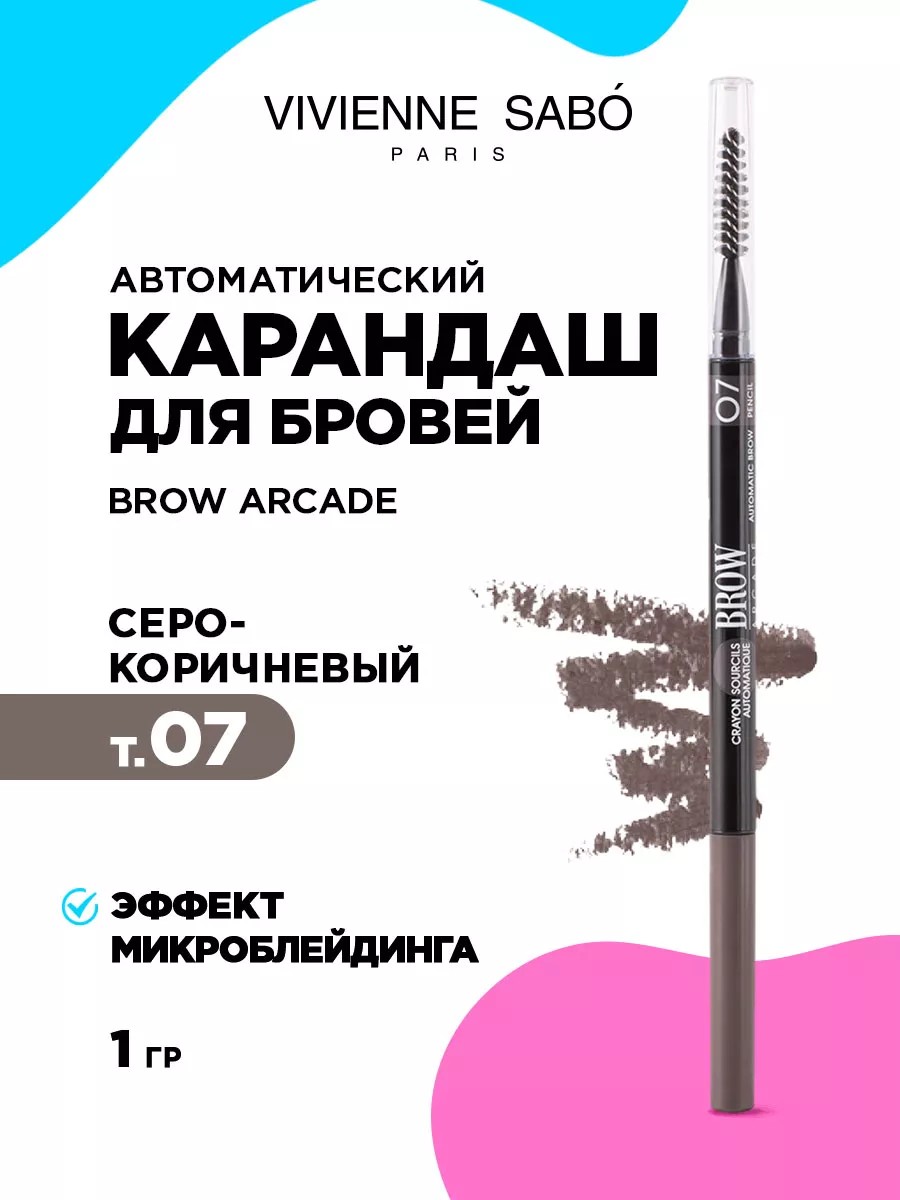 Vivienne Sabo Карандаш для бровей автоматический Brow Arcade, тон 07 серо-коричневый.