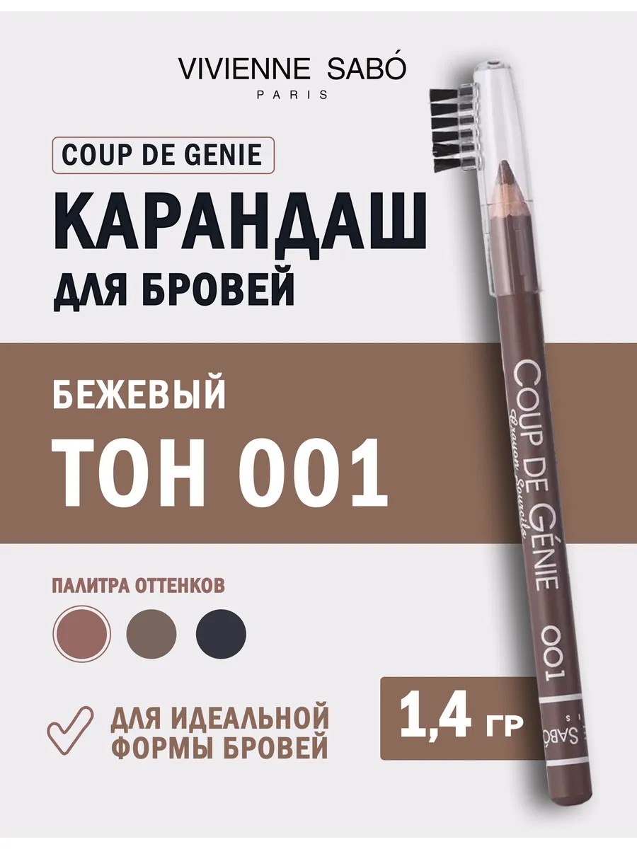 | Комплектация | Карандаш для бровей Vivienne Sabo Coup de Genie тон 001 бежевый - 1 шт. |
