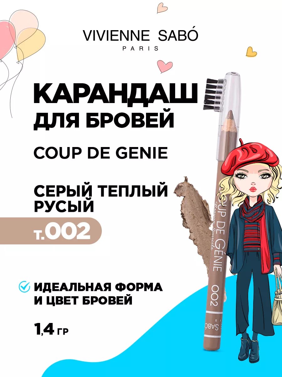 Vivienne Sabo Карандаш для бровей Coup de Genie тон 002 серый теплый русый