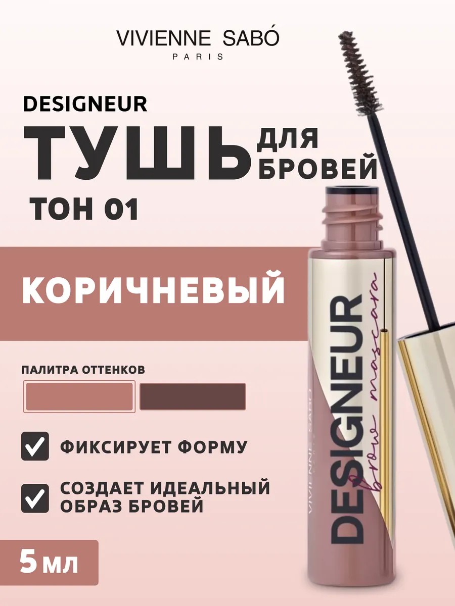 DESIGNEUR — тушь для бровей от Вивьен Сабо с обновленной палитрой. С ней ты почувствуешь себя настоящим дизайнером и создашь идеальный образ с густыми ухоженными бровями для любого случая. Тушь обволакивает каждый волосок, делая цвет бровей насыщеннее или приглушая темный натуральный тон, придает здоровый блеск, объем и аккуратно фиксирует форму. Благодаря особым частичкам в кремовой текстуре она сочетается с естественным оттенком бровей. Формула туши содержит увлажняющие компоненты для ухода за волосками и кожей в области бровей, защиты от вредного воздействия внешних факторов. Продукт в светло-коричневом 01 и серо-коричневом 02 оттенке упакован в золотой глянцевый флакон с акцентной деталью в тон туши, а его классической маленькой щеточкой удобно прокрашивать брови любой ширины. Открой для себя секрет идеальных бровей — DESIGNEUR от VIVIENNE SABO.